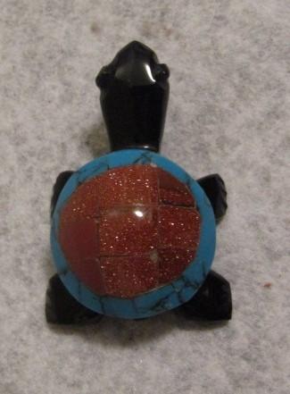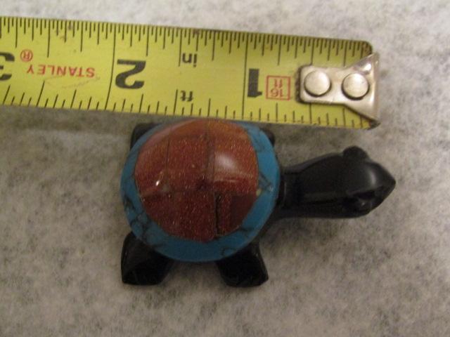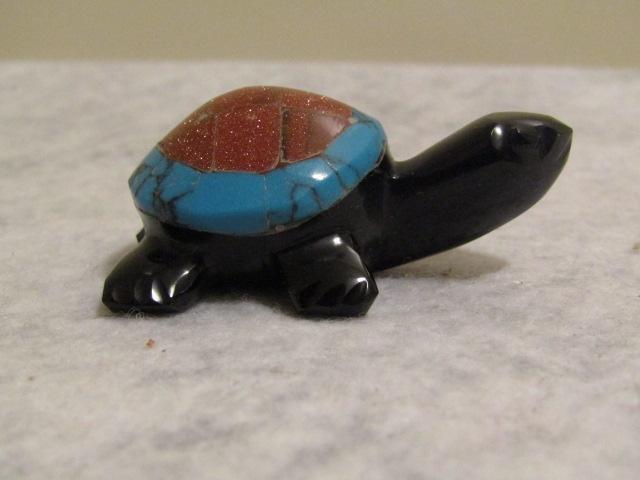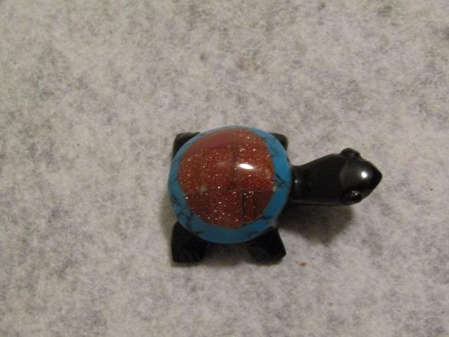Handcarved Black Onyx Turtle with Turquoise Shell 1 1/4" x 2"