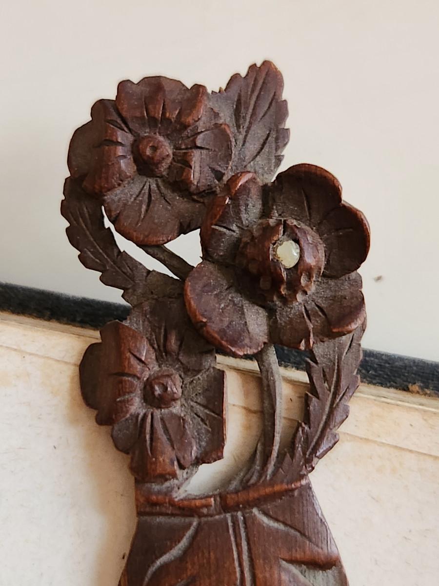 This auction lot is for a Hand-Carved Wood Swiss Bookmark with Stanhope Viewer. The viewer shows an old spa/hotel on the Rigi Mountain in Switzerland. The Rigi, also known as the Queen of Mountains, towers majestically between Lakes Lucerne, Zug and Lauerz. The highest point on the Rigi-Kulm is where visitors can admire a magnificent panorama over Lake Lucerne and the nearby Alps, and to the Swiss Plateau looking north. A Stanhope viewer, also known as a Stanho-scope, is a device that allows users to view microphotographs without a microscope. The device was invented in 1857 by Parisian portrait maker René Dagron. This bookmark has some age, it appears as the point has been worn or cut off and it is possible that one of flowers may be missing a petal - but this is a wonderful example of this art. The stanhope appears as a seed pearl in one of the accompanying photos.