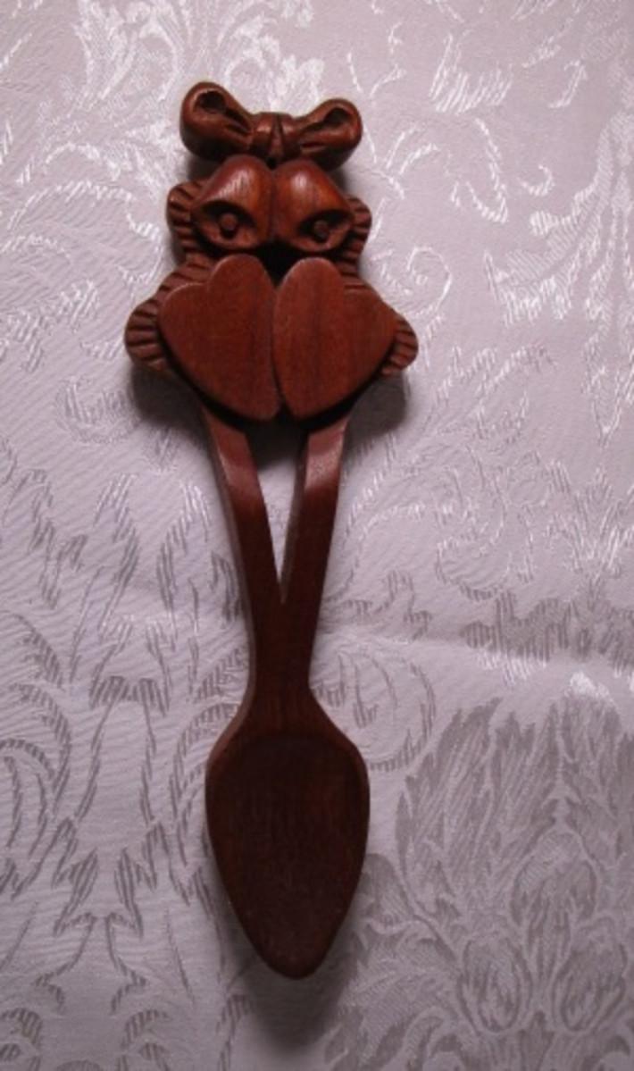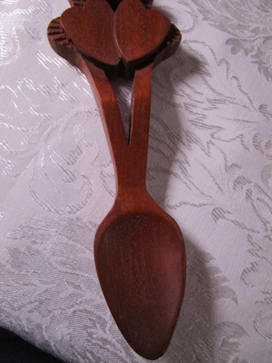 Hand-carved wood Welsh decorative spoon