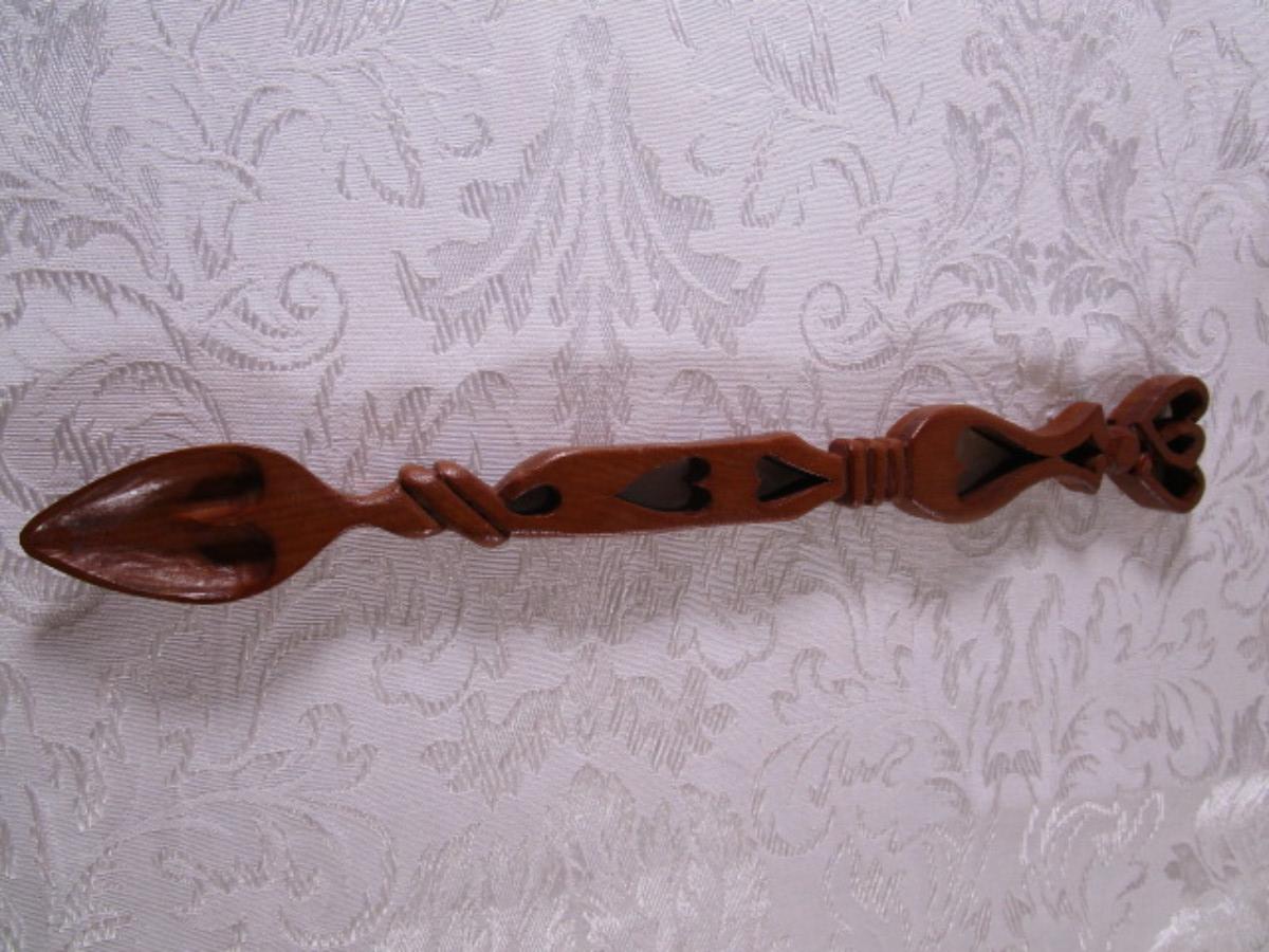 Hand-carved wood Welsh decorative spoon