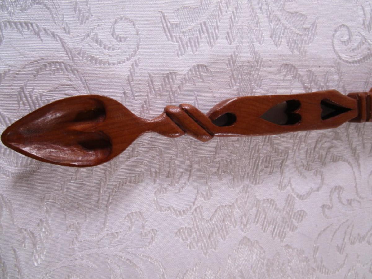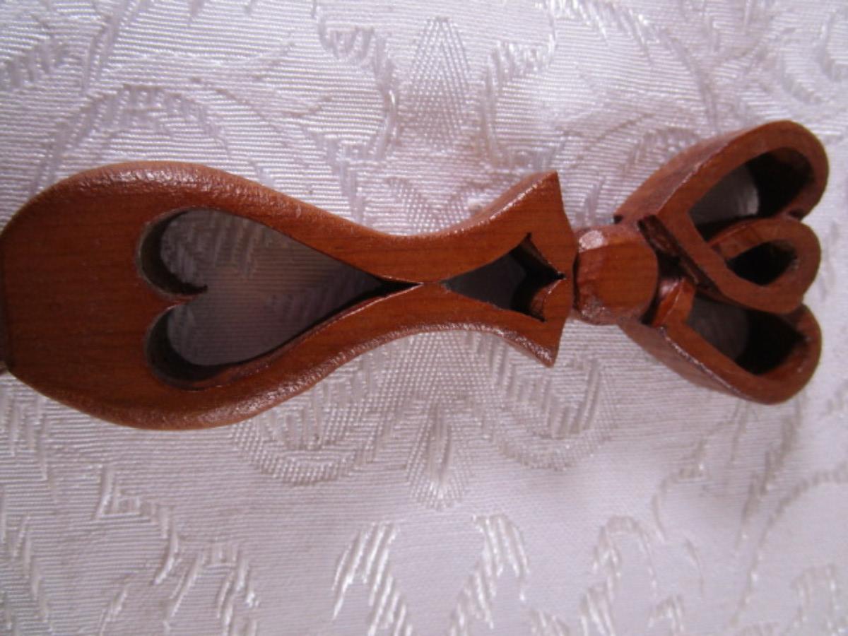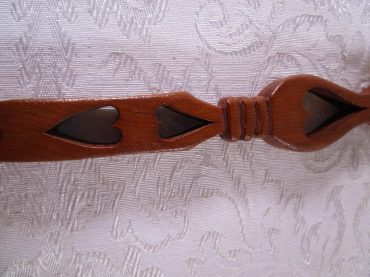 11" long x 1-1/2" wide, has hearts carved on it