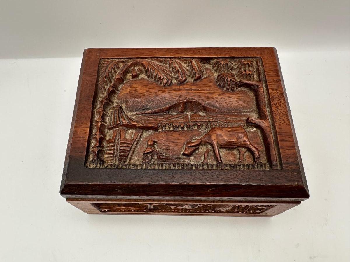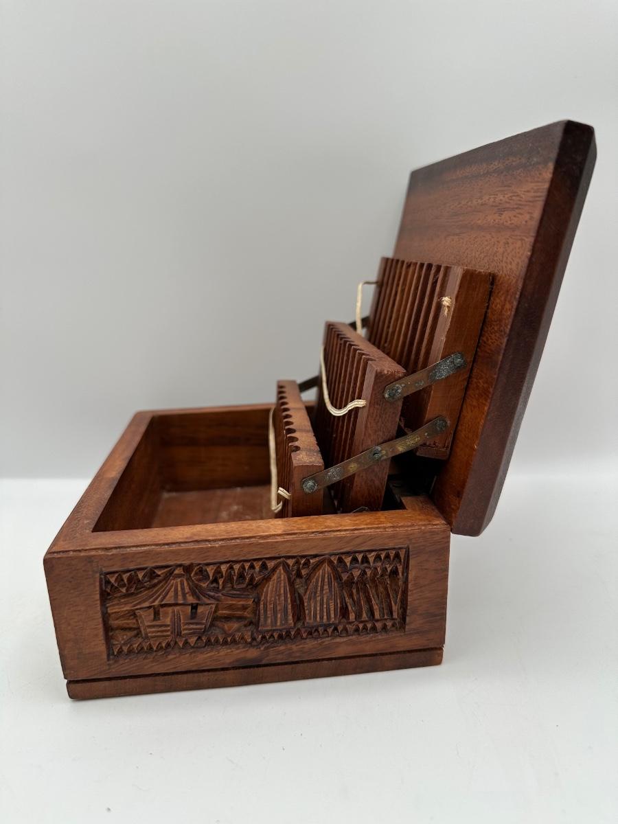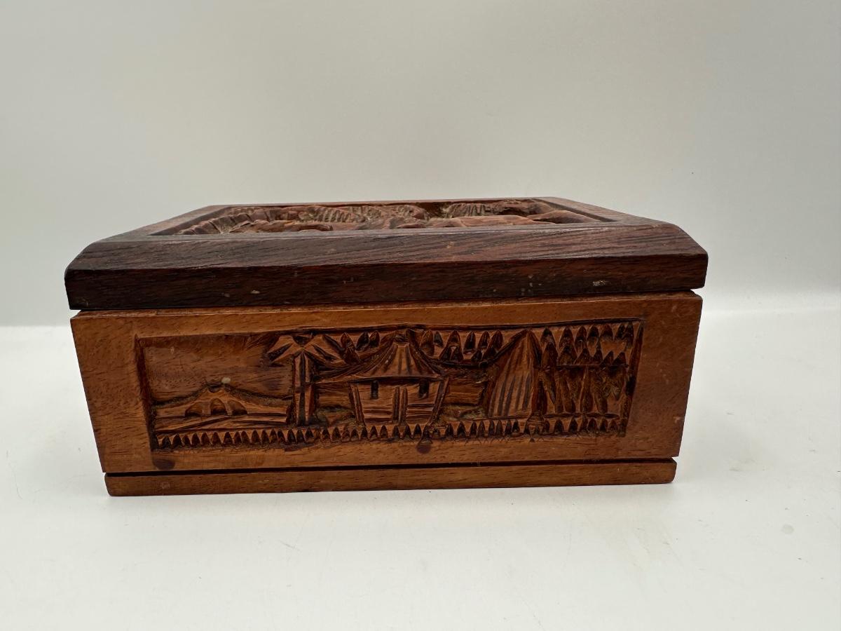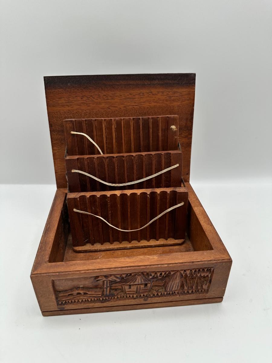 Hand-Carved Wooden Cigarette / Card Box