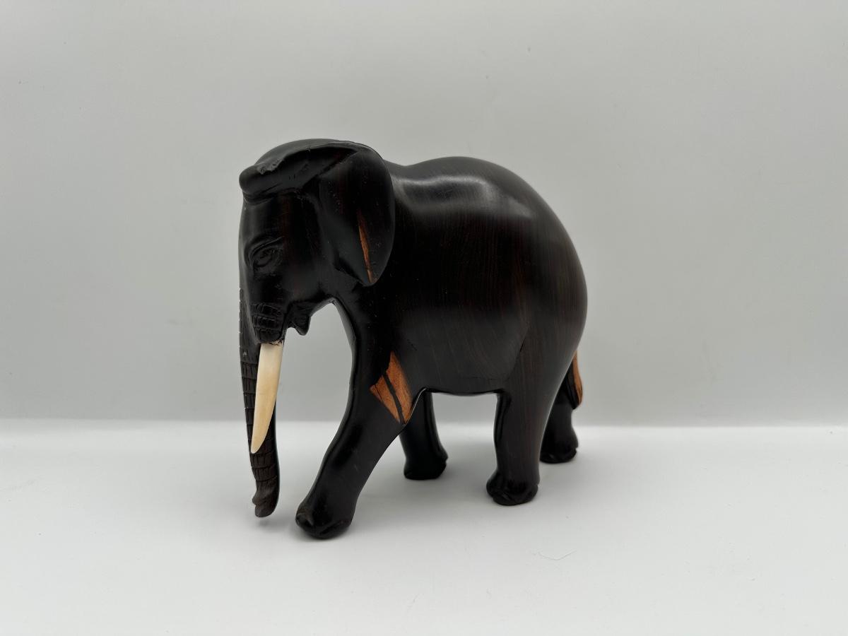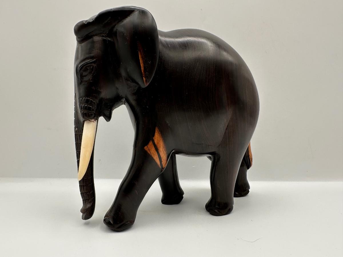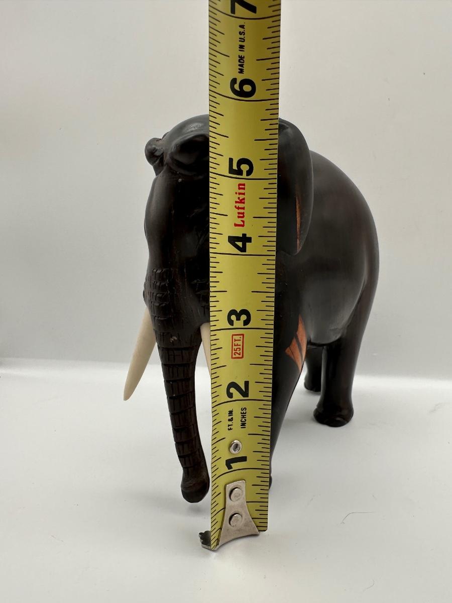 Carved Wooden Elephant Figurine with Painted Details