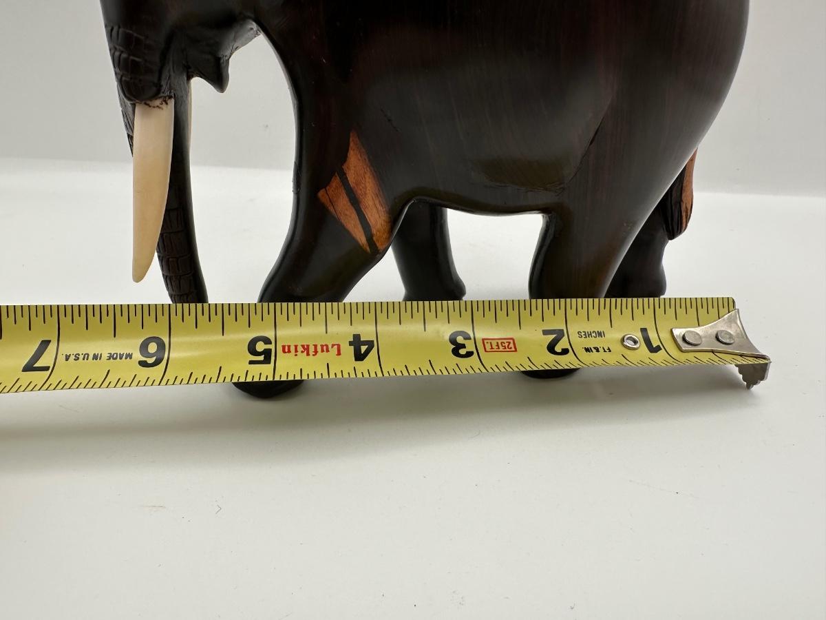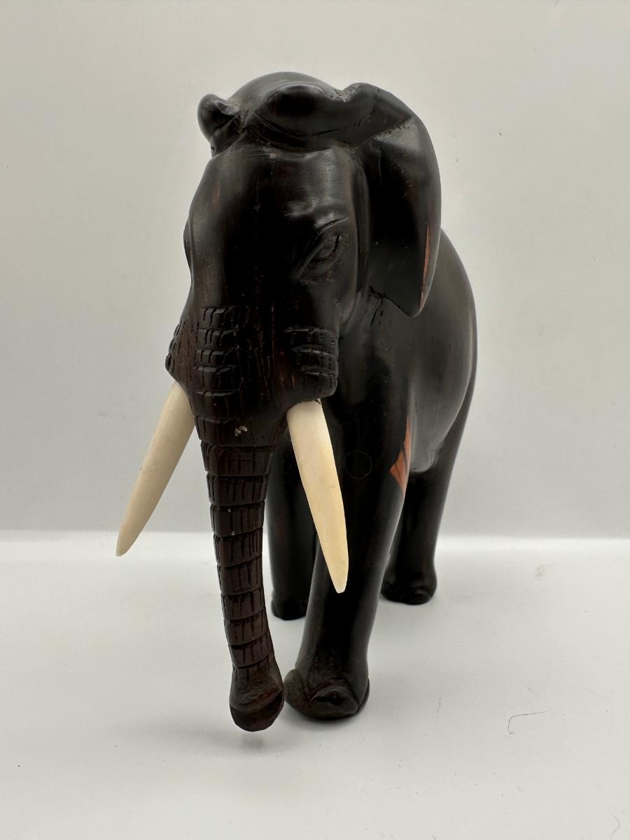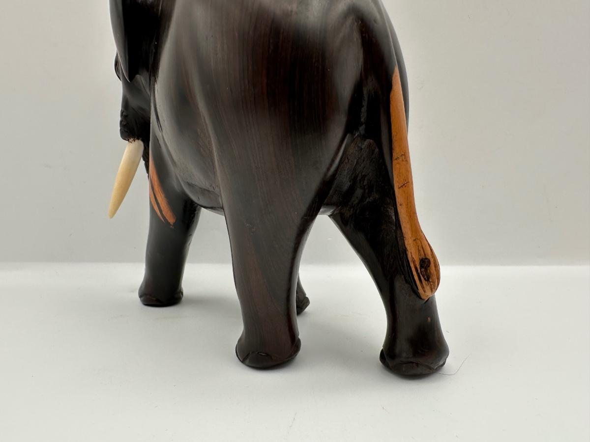 Carved Wooden Elephant Figurine with Painted Details