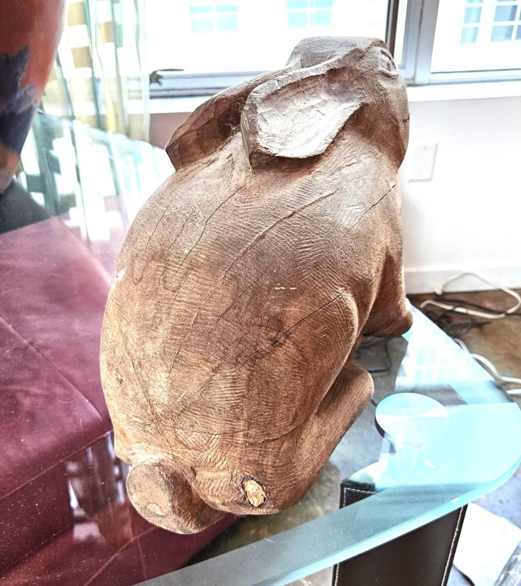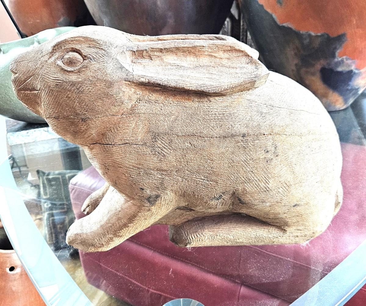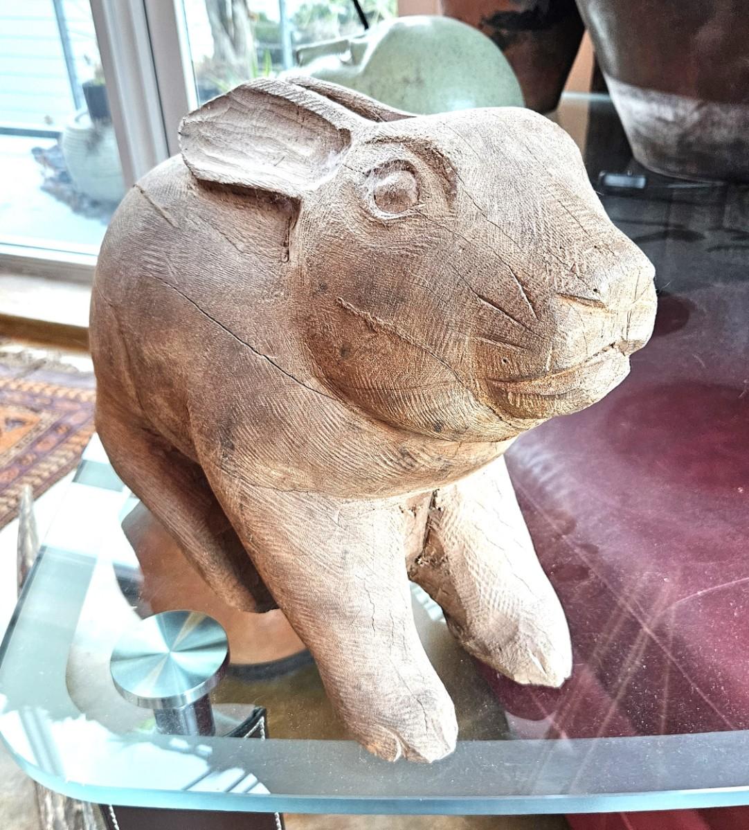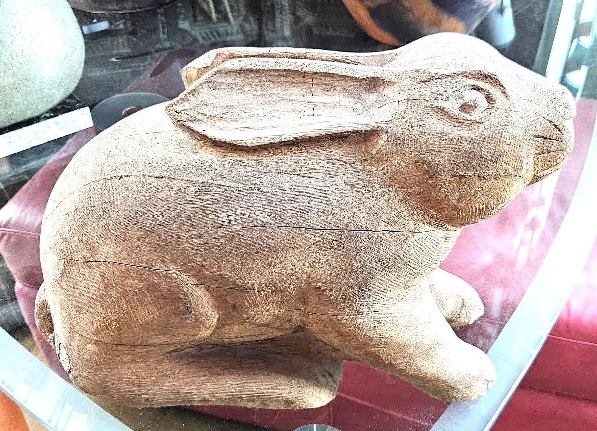 Hand-Carved Wooden Rabbit Figurine, 12 H, 16W