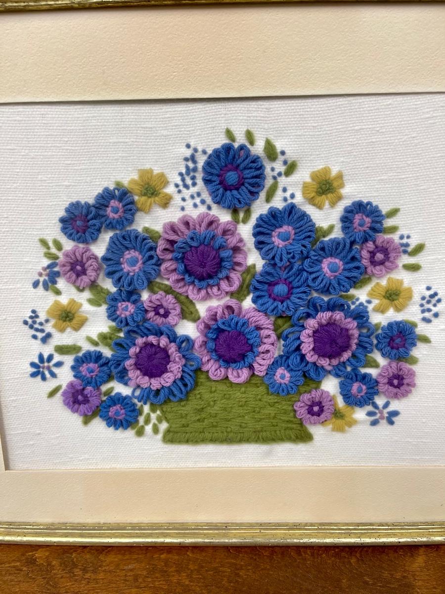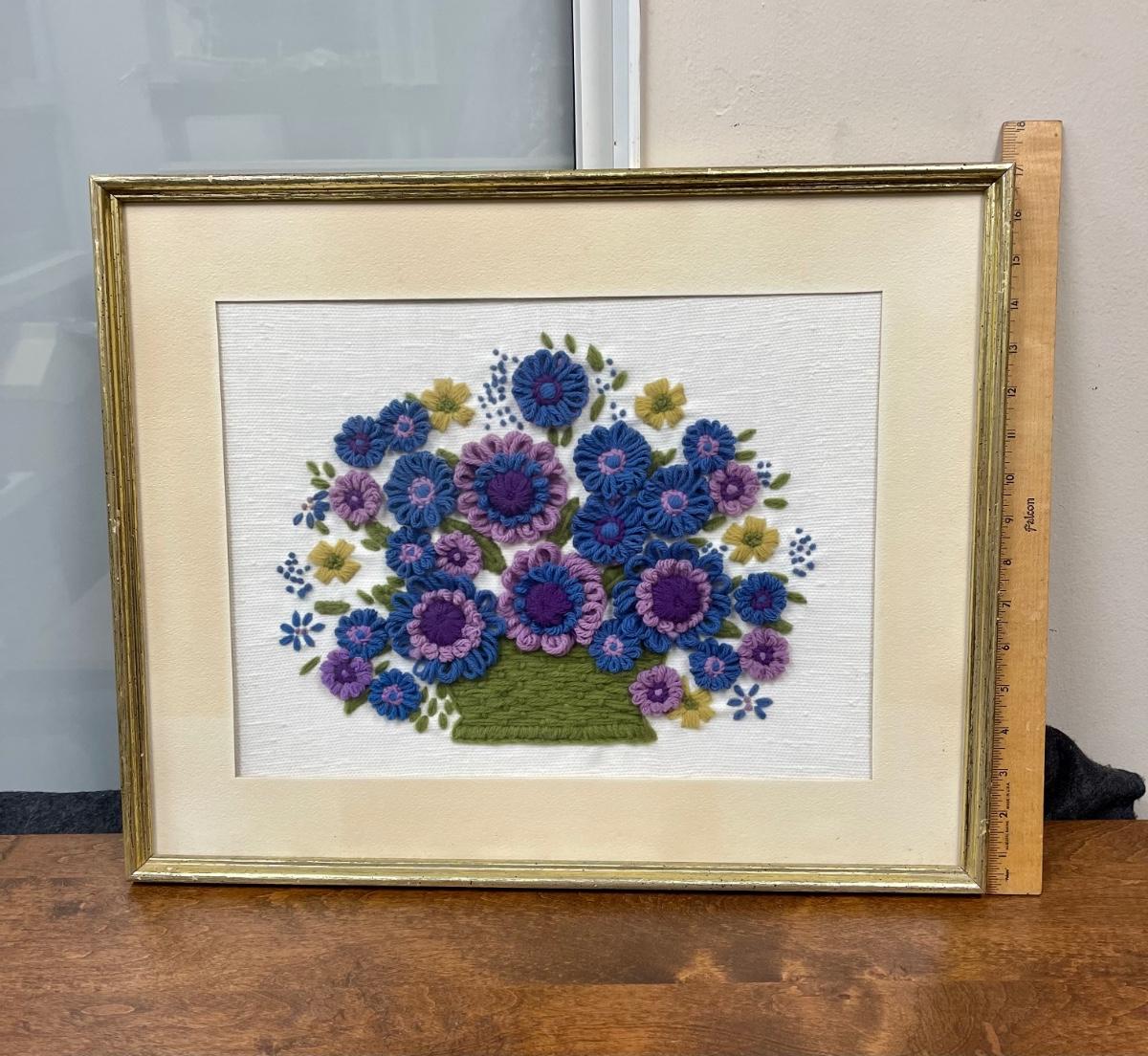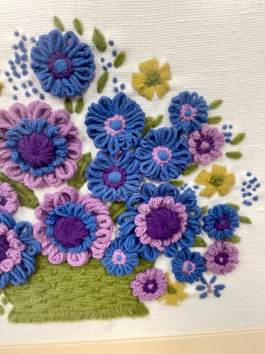 Handcrafted 70”s Hippie Boho Retro artwork hand stitched crewel