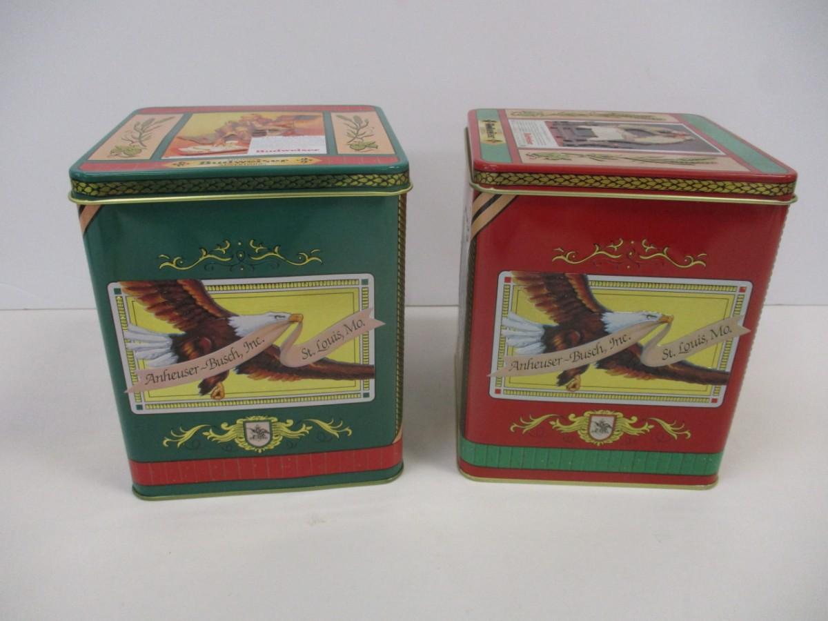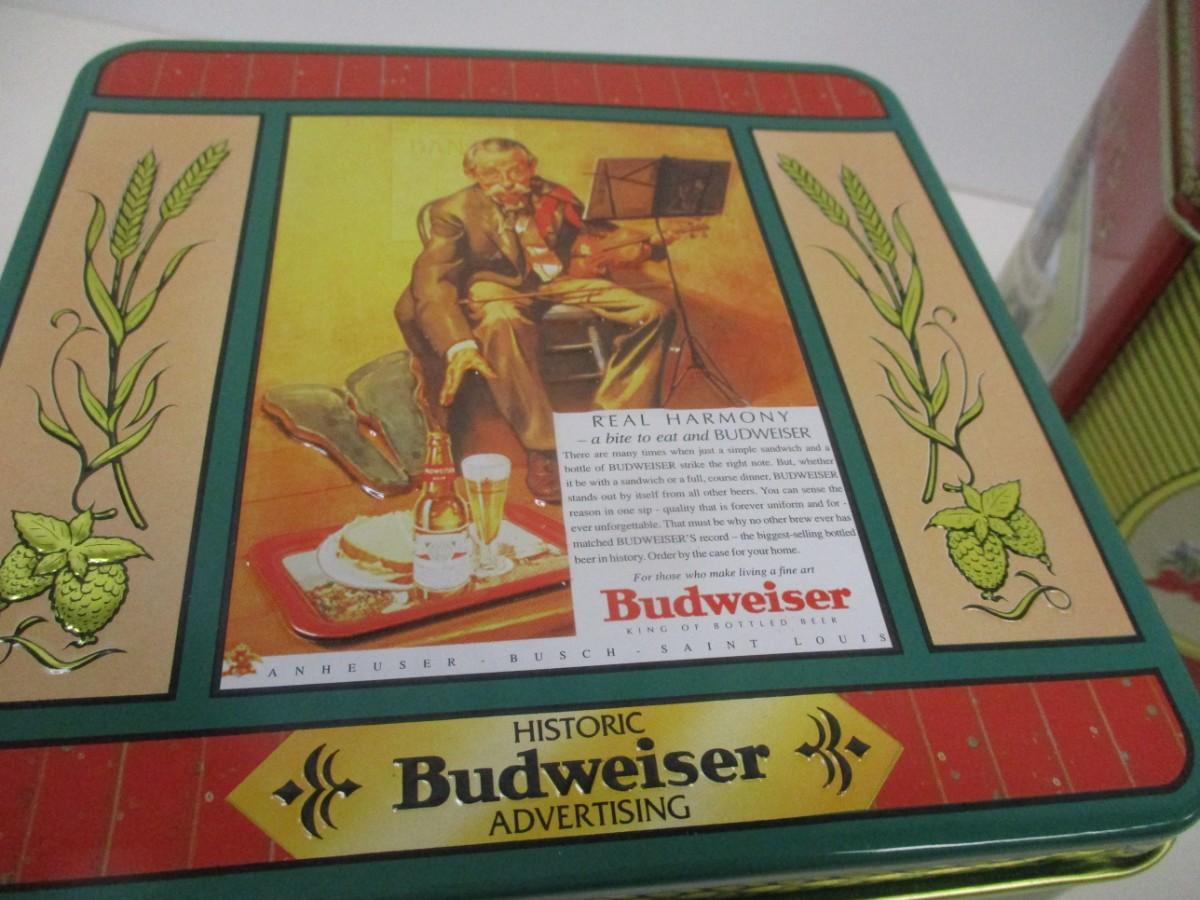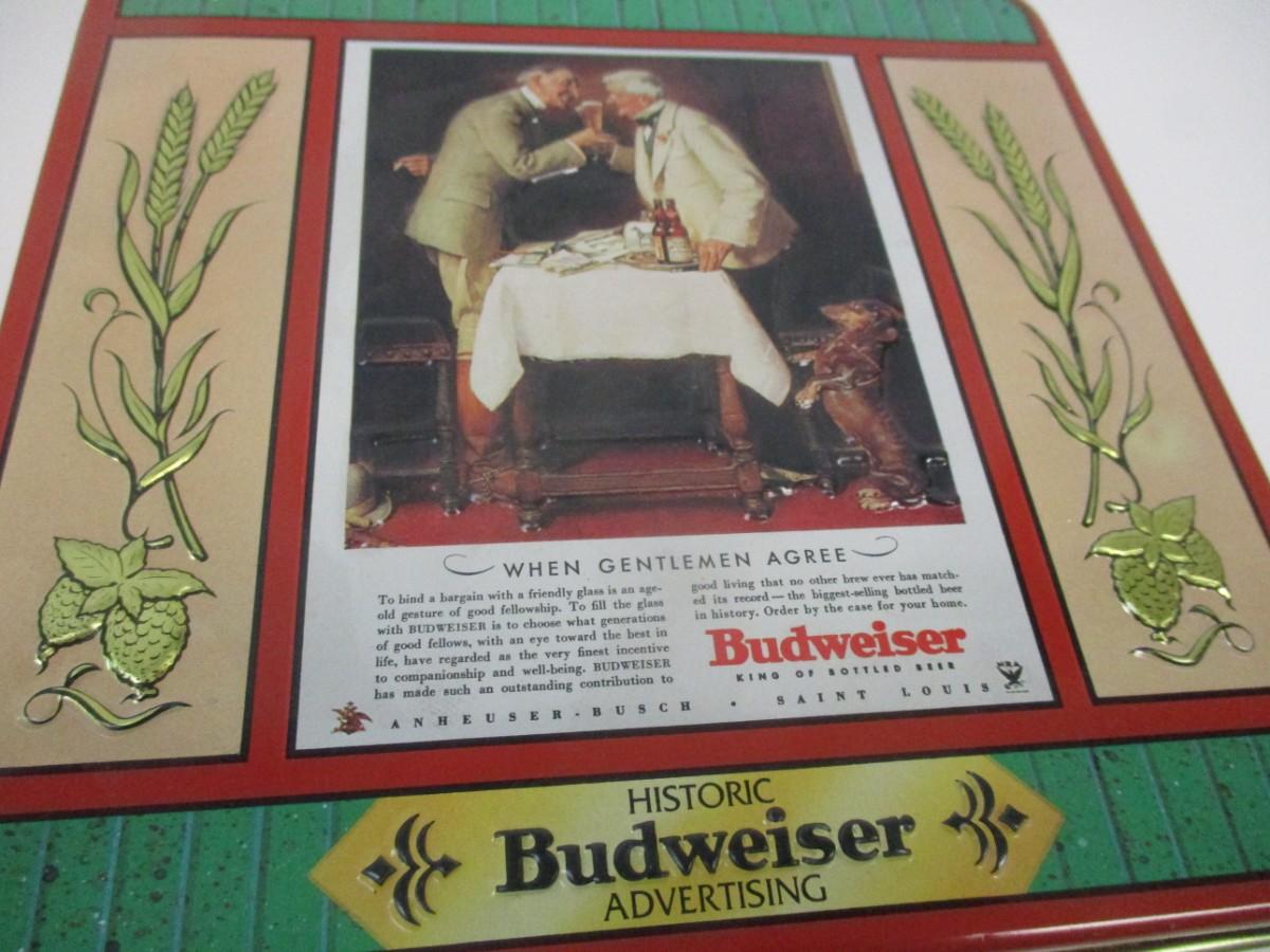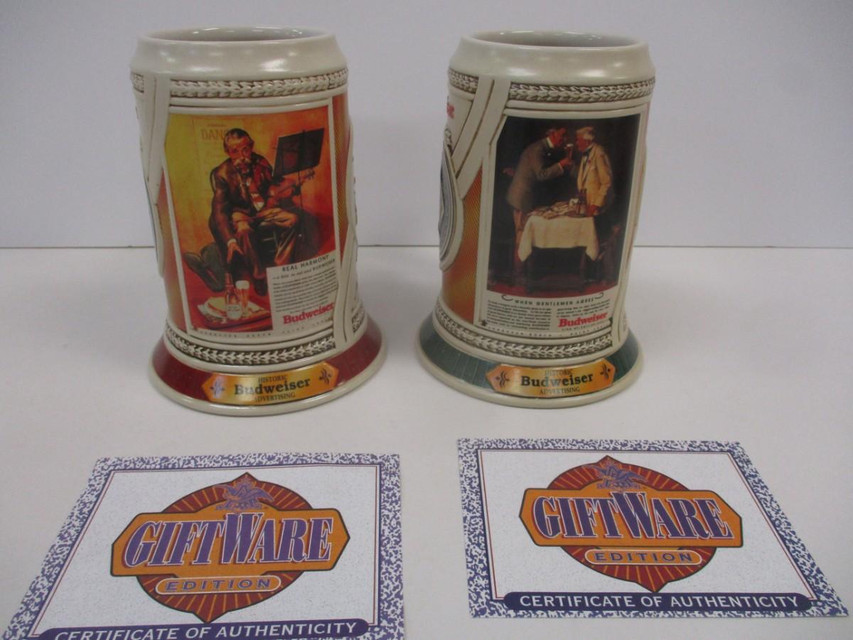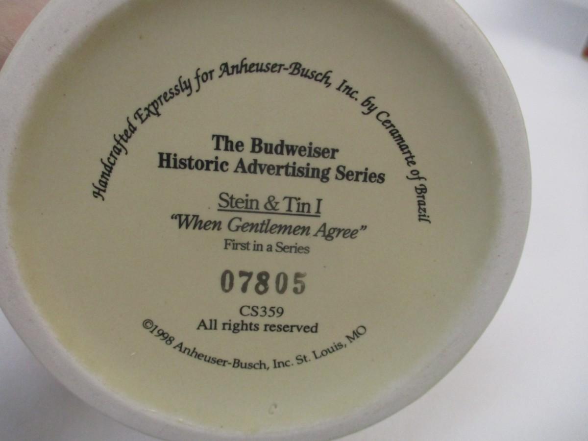Handcrafted Anheuser Busch Tin Bud Historic "Real Harmony" Advertising Series Stein & Tin " Second In Series 04740 & "When Gentlemen Agree" First In Series 07805