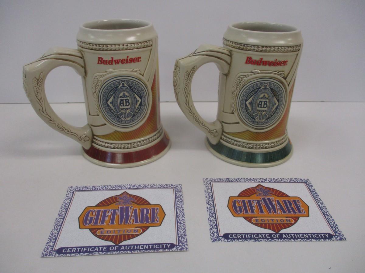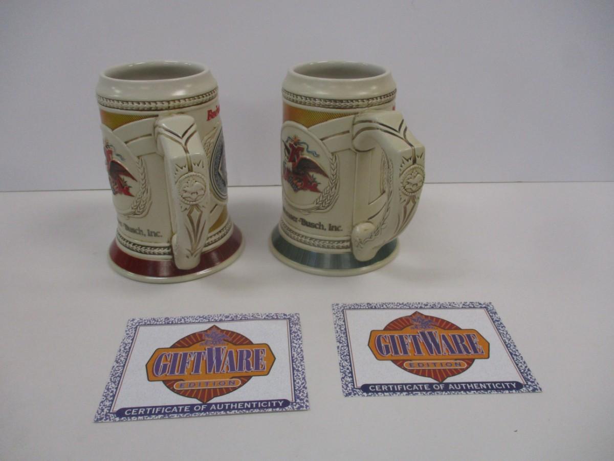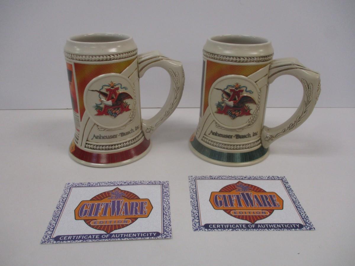 Handcrafted Anheuser Busch Tin Bud Historic "Real Harmony" Advertising Series Stein & Tin Second In Series 04740 & "When Gentlemen Agree" First In Series 07805