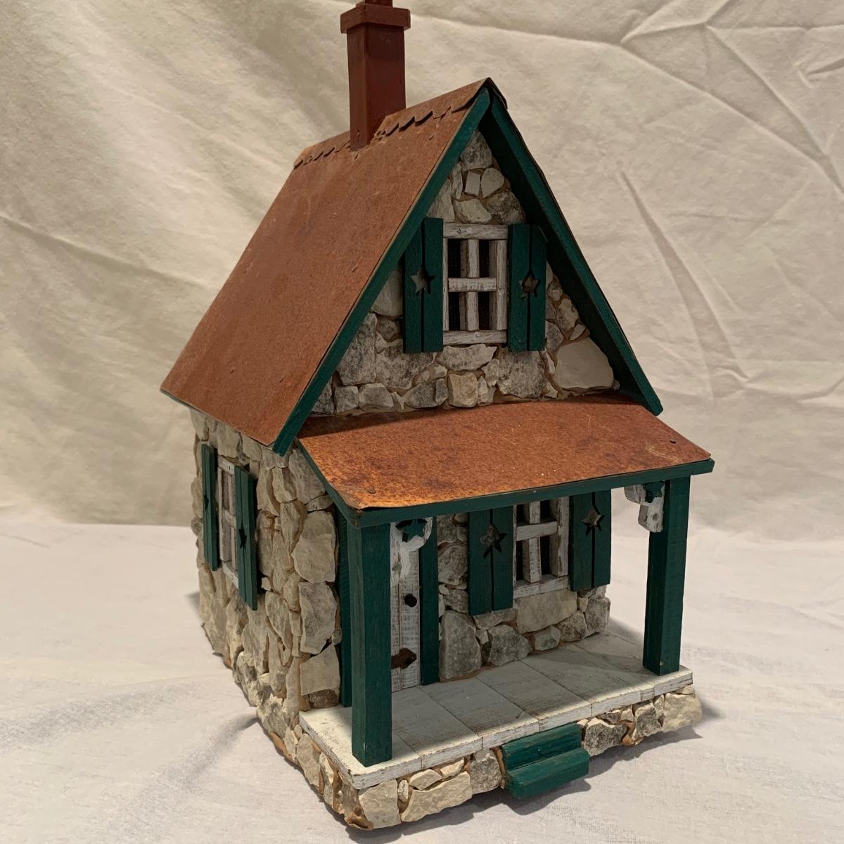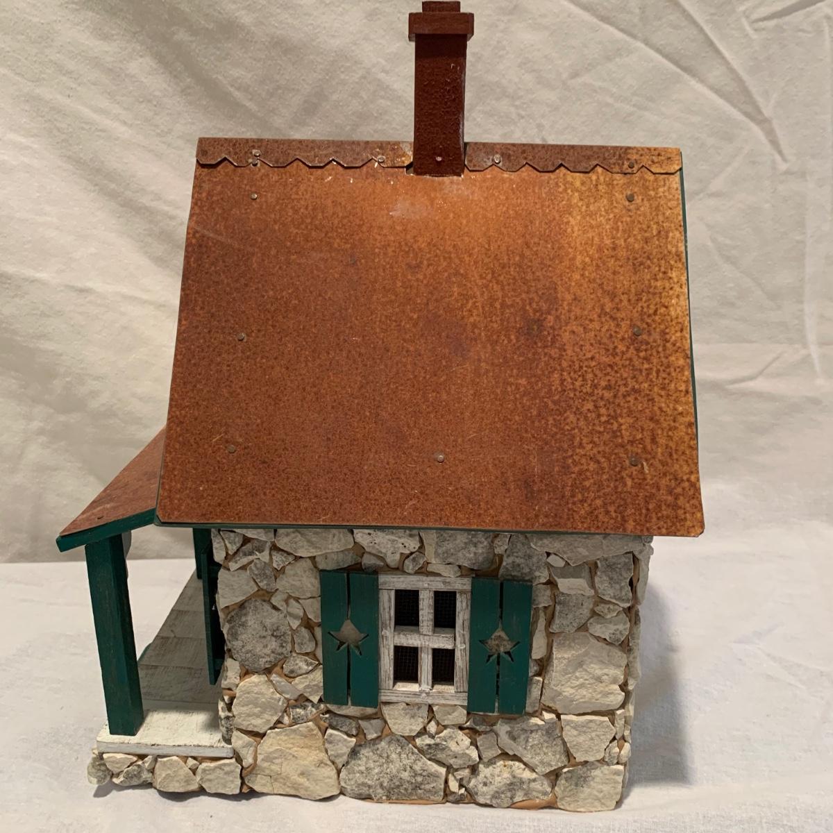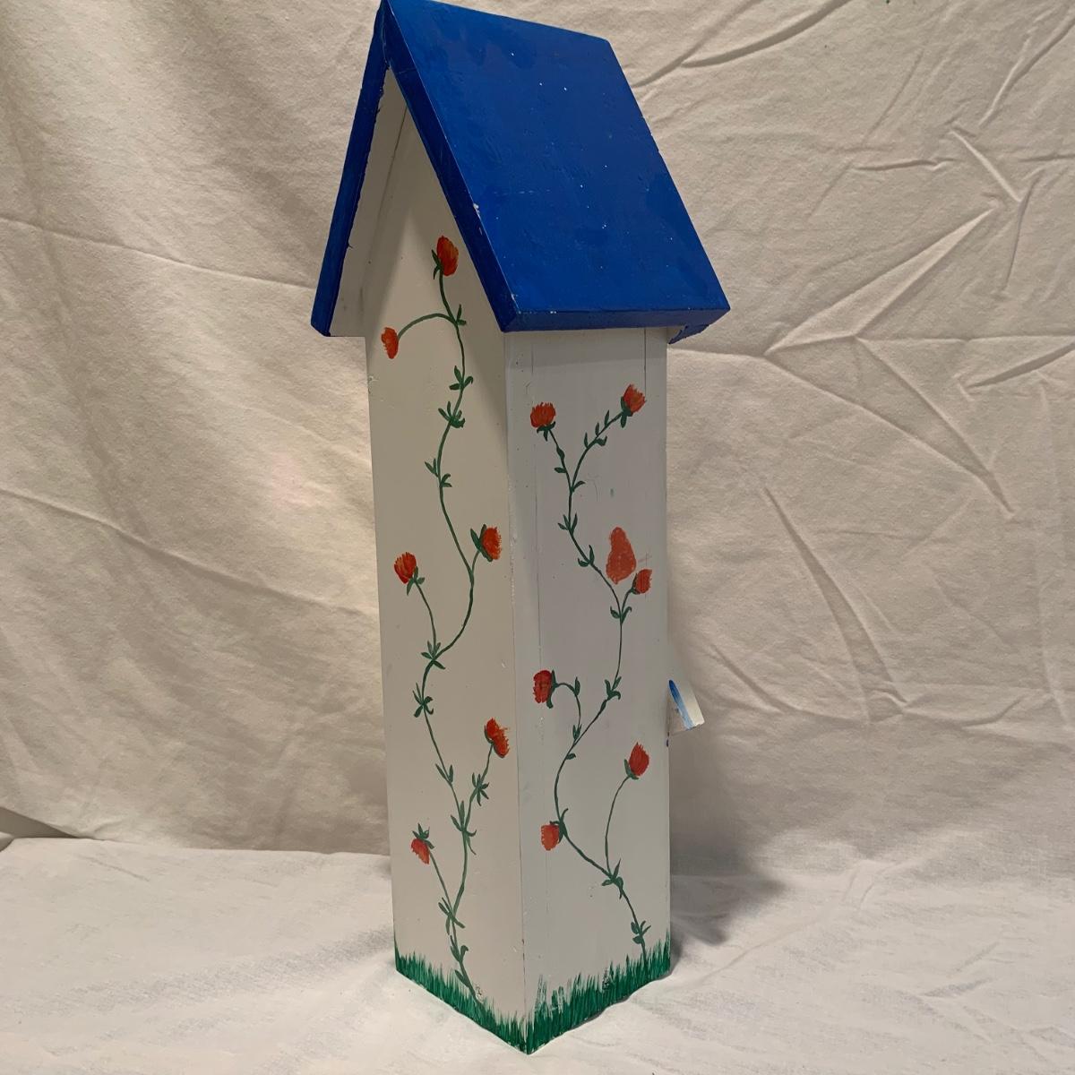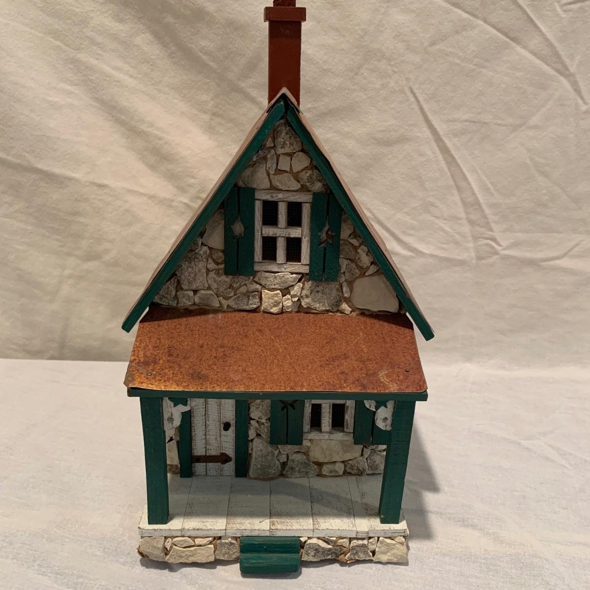 Lot includes four lovely birdhouses. Each handcrafted with unique design. Tallest house measures, 7.5” x 6.5” x 23”H. Please note, stone birdhouse it quite heavy. Please see photos for more details.