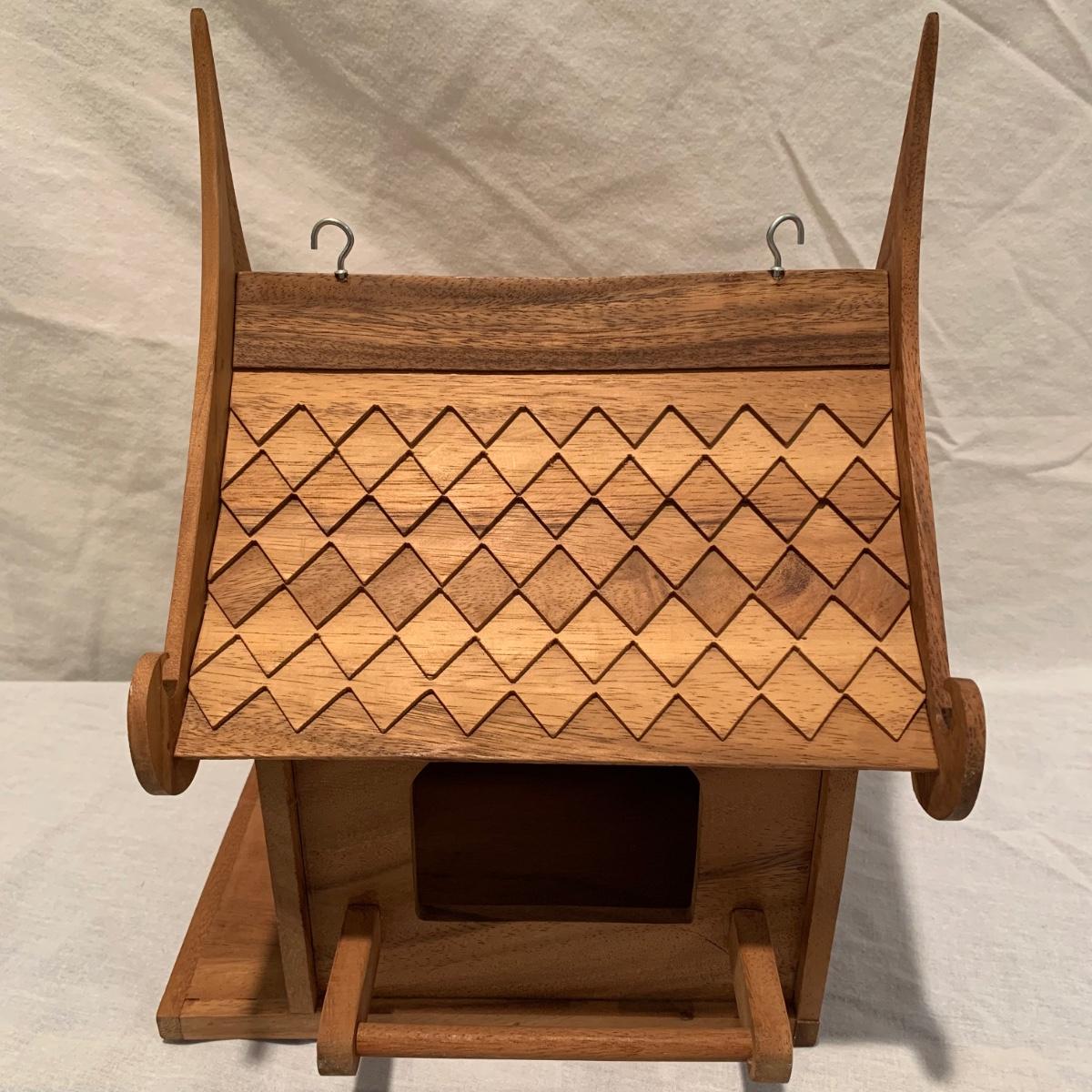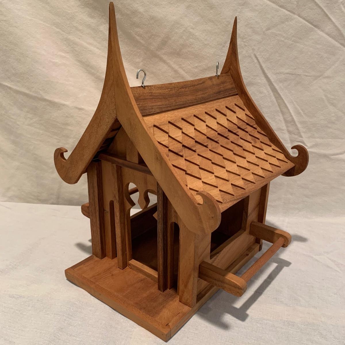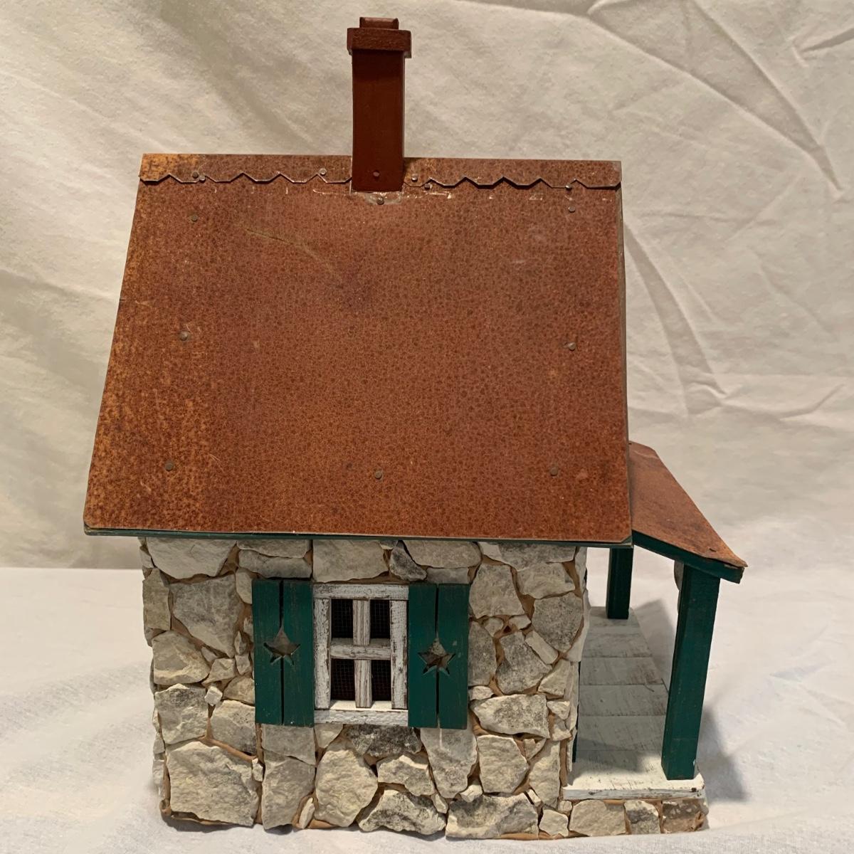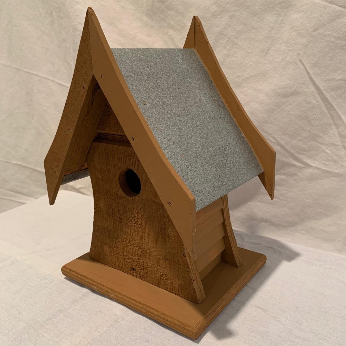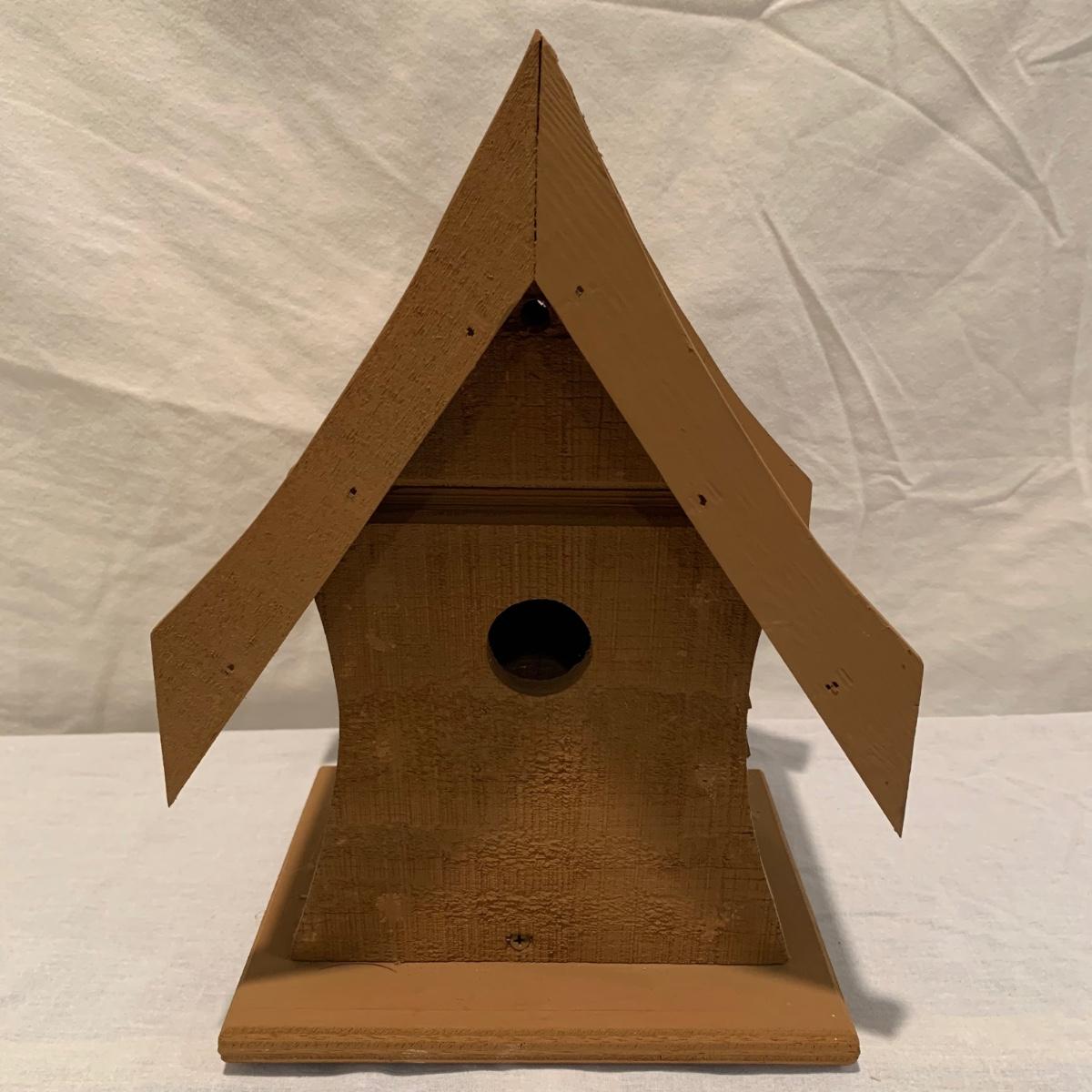 Lot includes four lovely birdhouses. Each handcrafted with unique design. Tallest house measures, 7.5” x 6.5” x 23”H. Please note, stone birdhouse it quite heavy. Please see photos for more details.