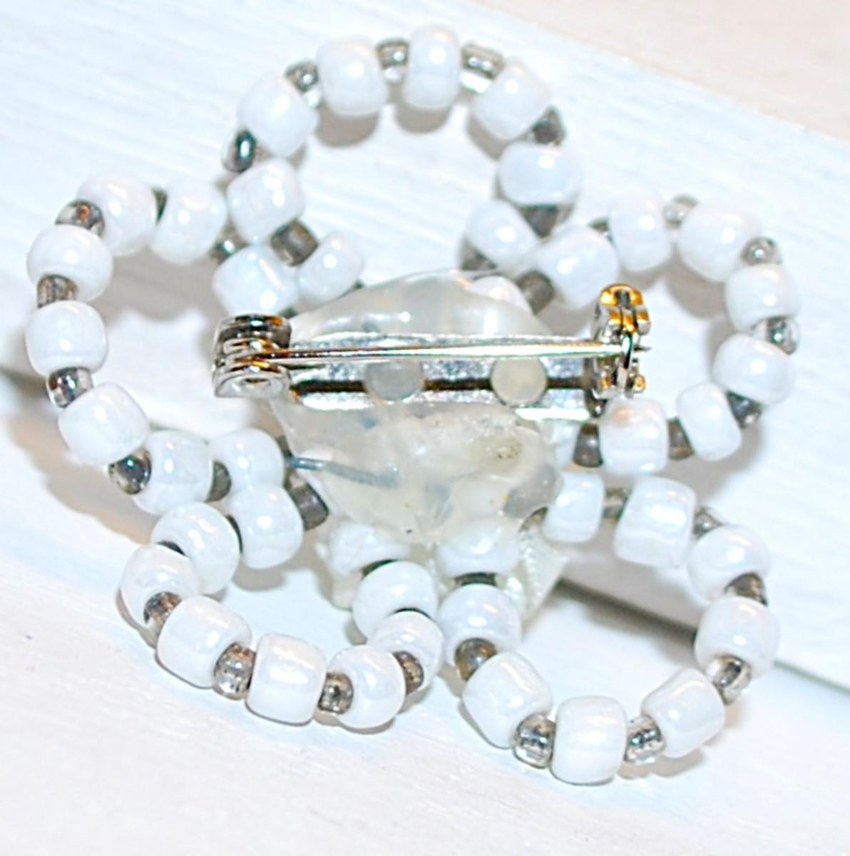 Handcrafted BLACK & SILVER Bead 5 Looped Flower BROOCH (1½" Diam.) with Cloth Rose