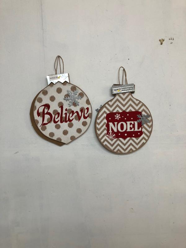 New condition on this pair of 16" double-sided Christmas wall hangings...with tags..