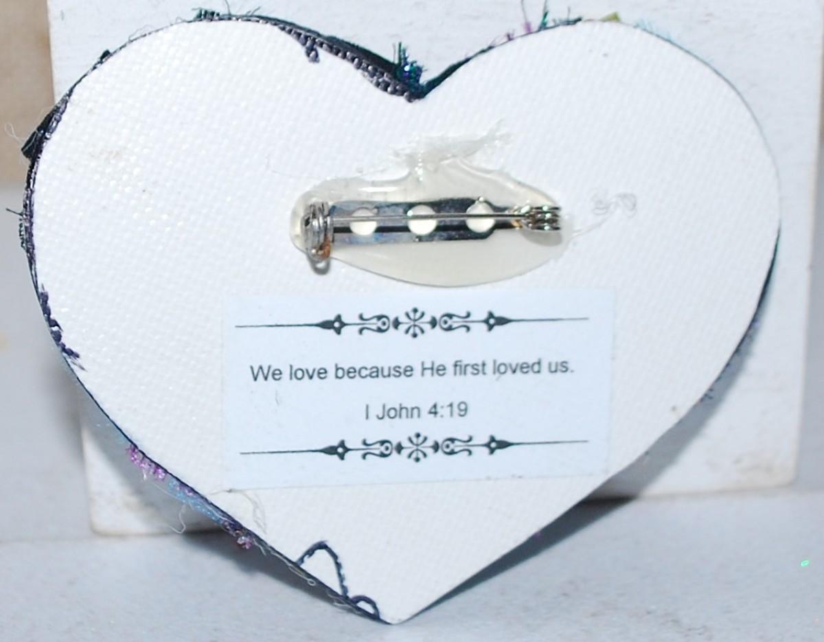 Handcrafted Cloth Flowers & Roses on a Heart Shape BROOCH (3" x 2")
