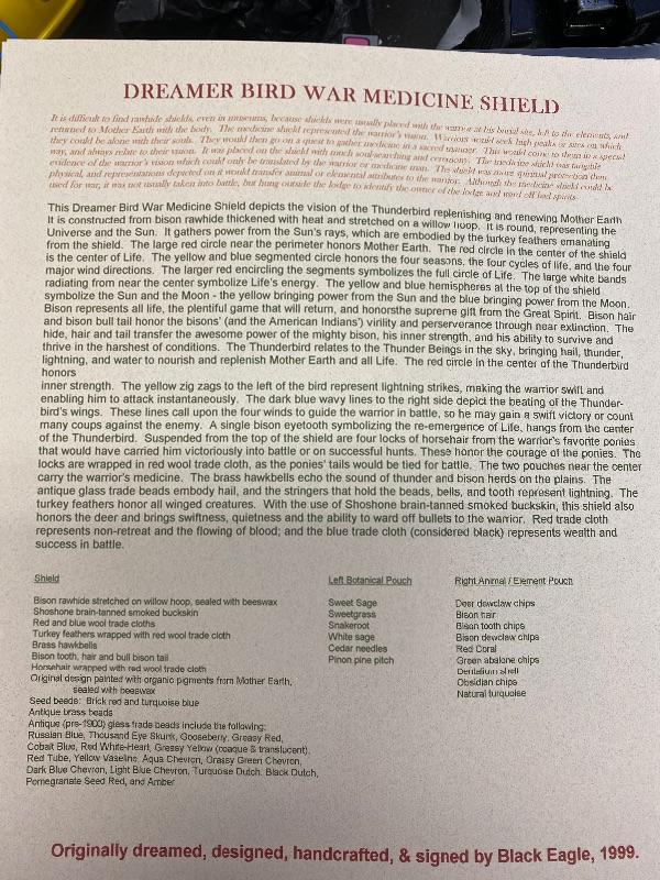 Lot #421 Handcrafted Dreamer Bird War Medicine Shield by Indian Artist Black Eagle