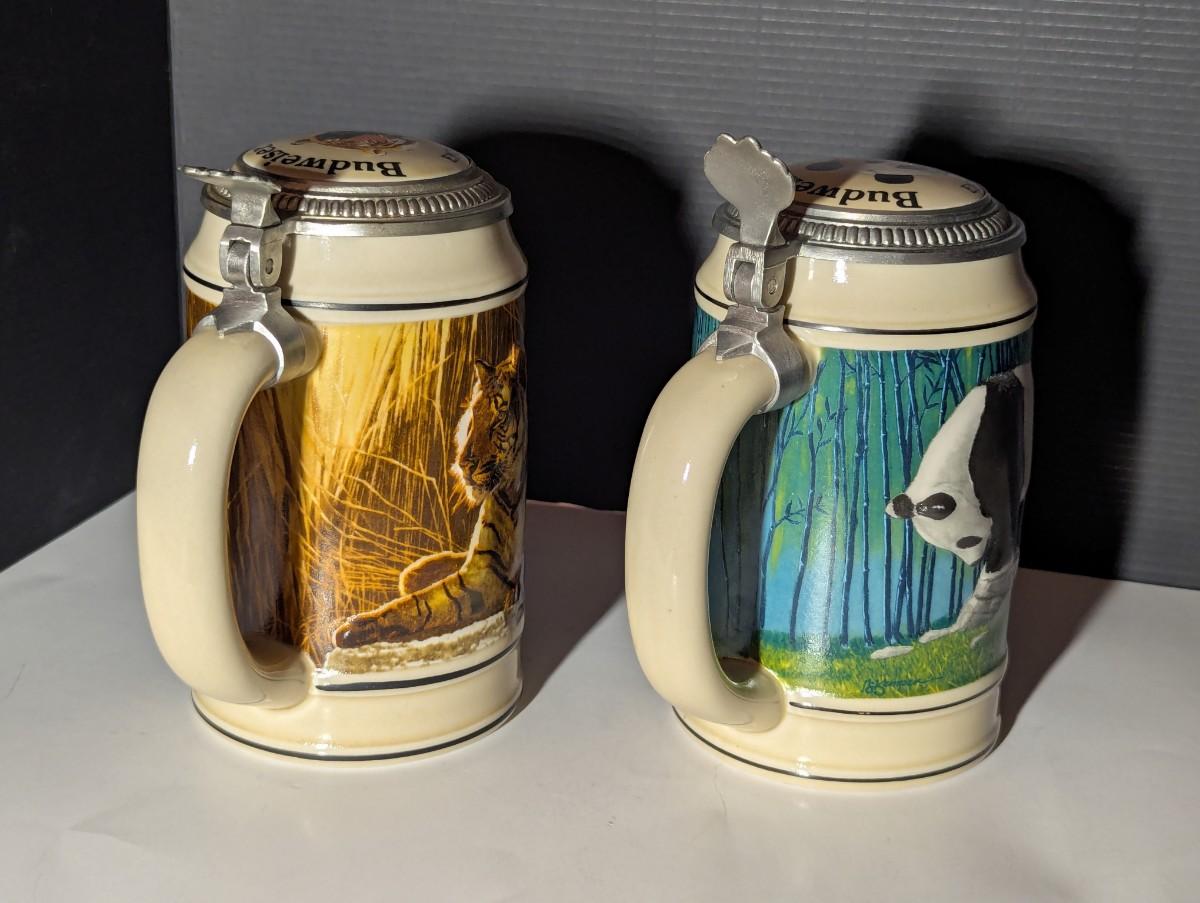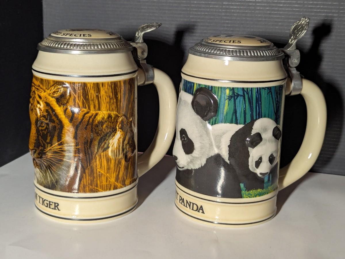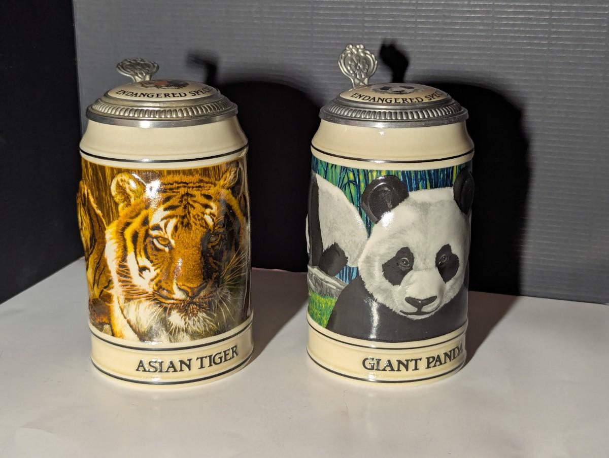 Handcrafted Endangered Species Steins "Asian Tiger" & "Giant Panda"