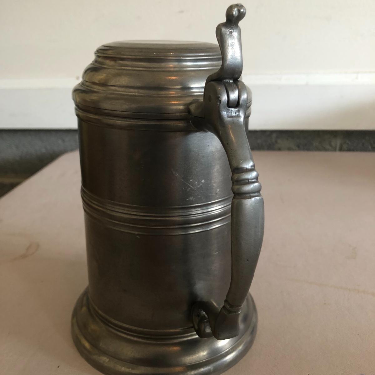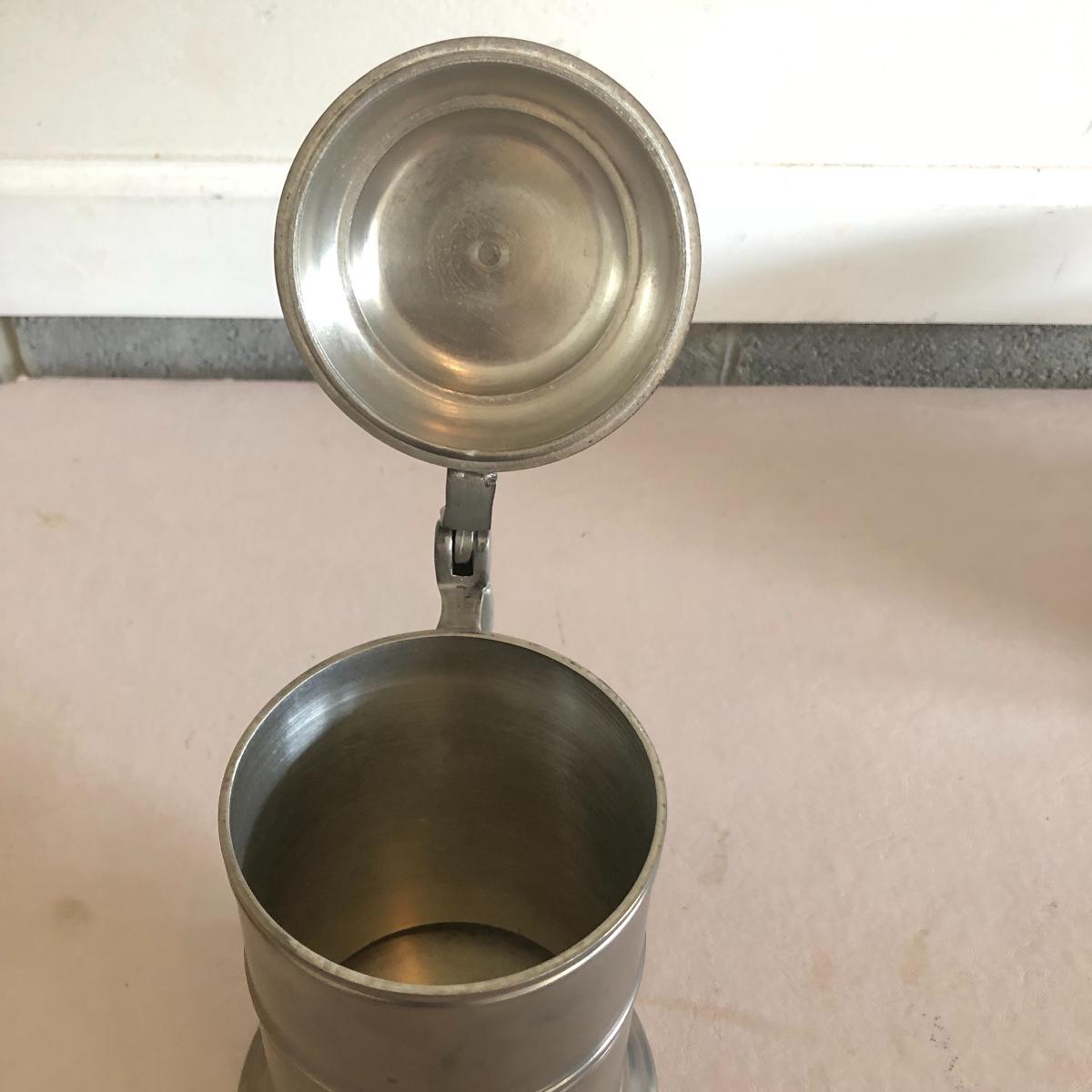 This all pewter mug has been handcrafted and measures 5” x 8”.