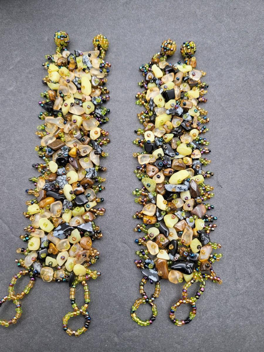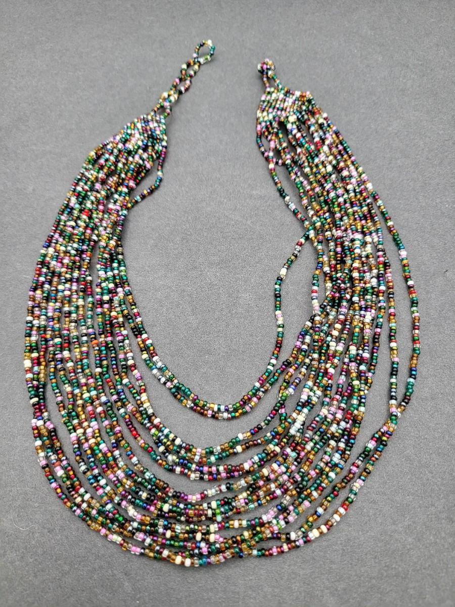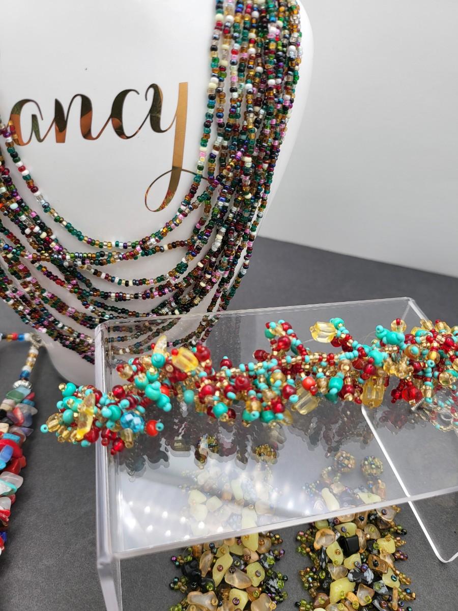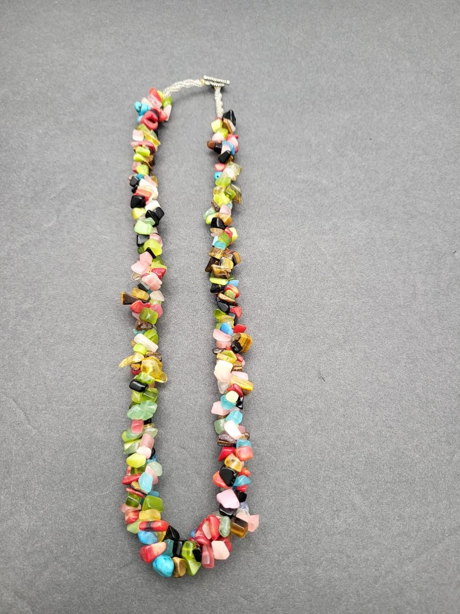Colorful glass bead jewelry lot: Three necklaces 15" to 18" and three bracelets 7"-7.5", all hand strung.