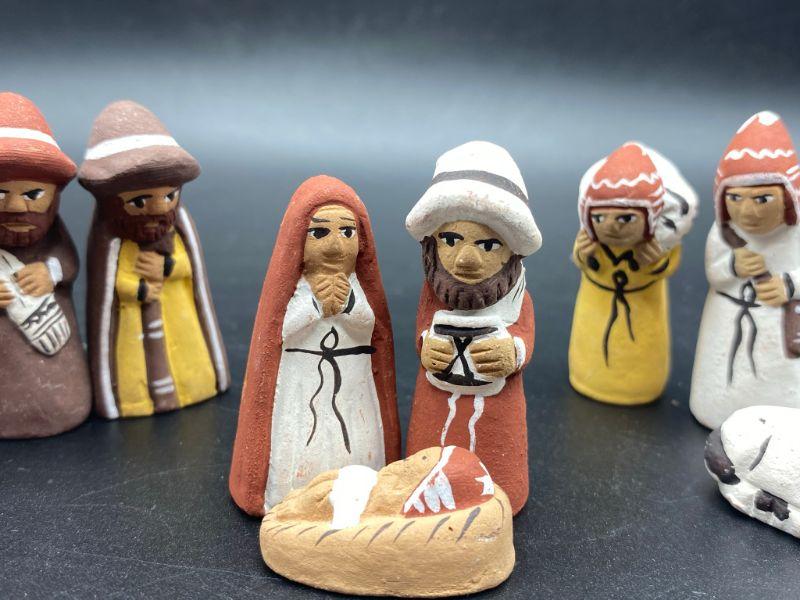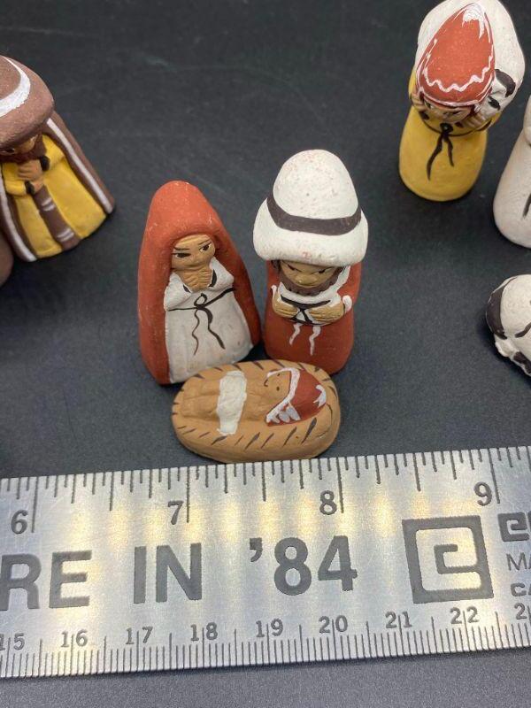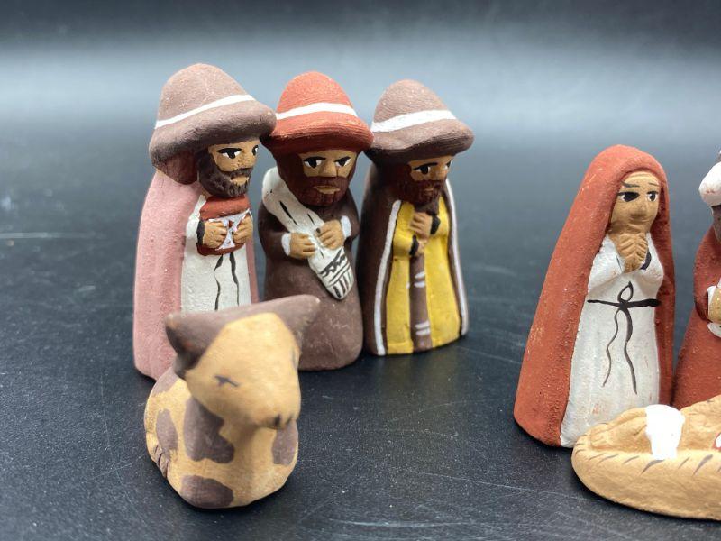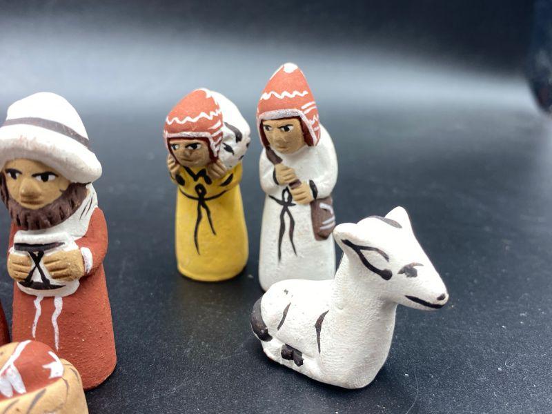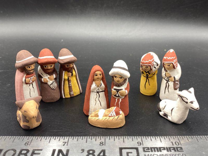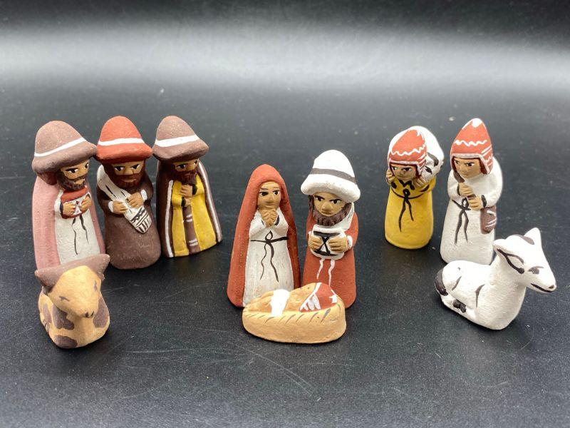 10 piece Nativity scene. Painted clay, handcrafted in Peru. Nicely done.