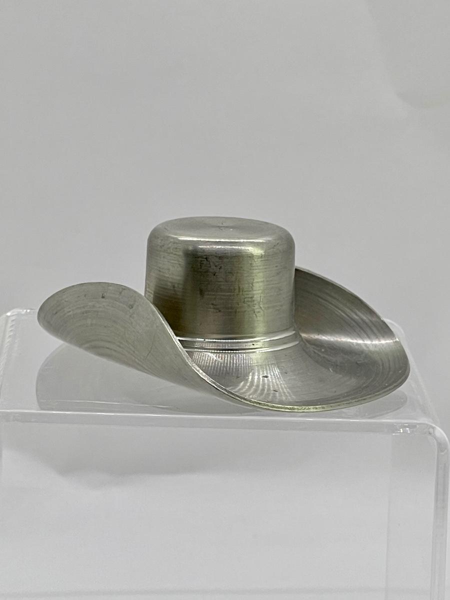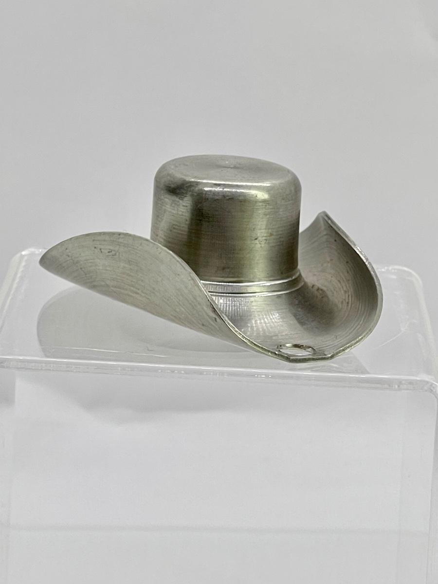 Handcrafted metal cowboy hat charm/pendant/bolo tie attachment in good condition. Approx 2” x 3”.