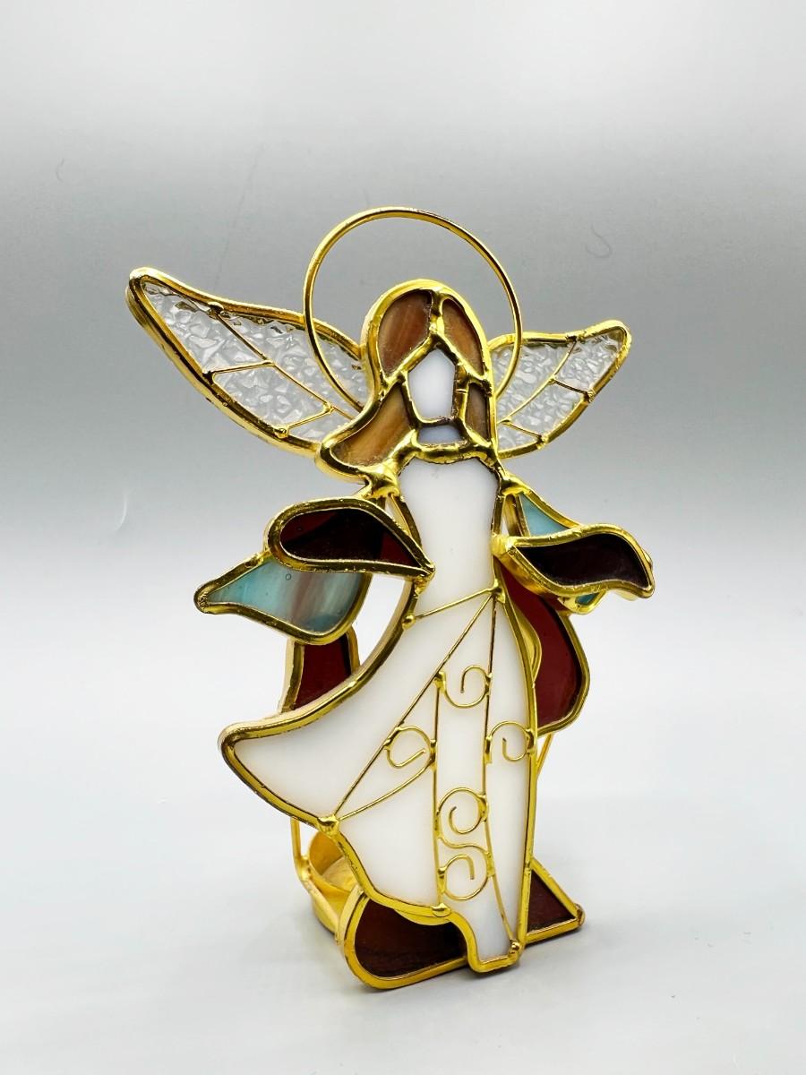 Handcrafted Metal Glass Religious Angel Decorative Candle Holder