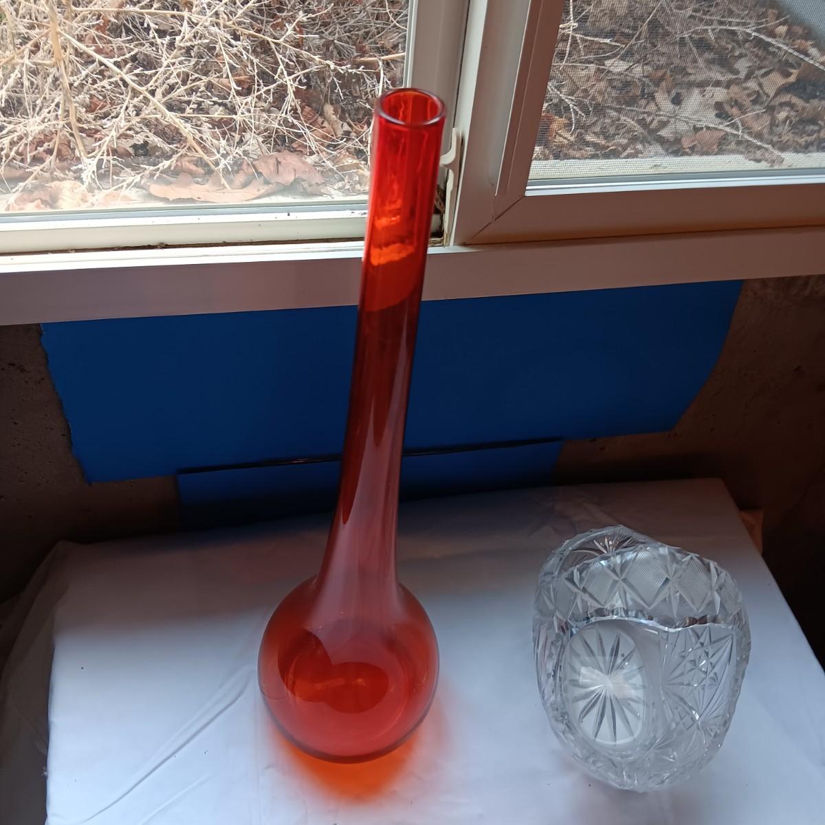 HANDCRAFTED ORANGE GLASS VASE AND A GLASS BASKET