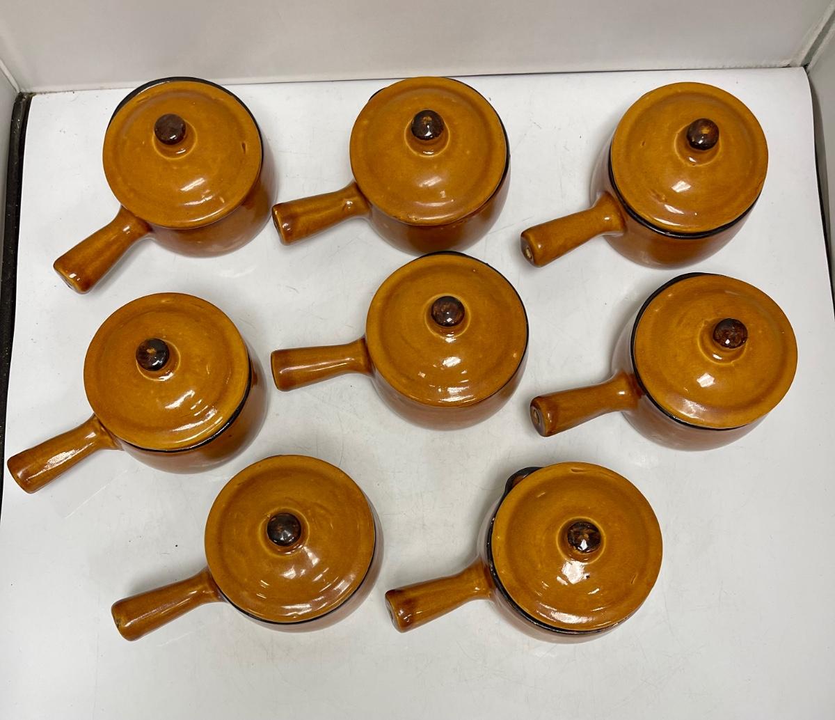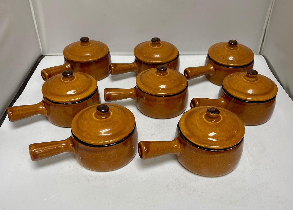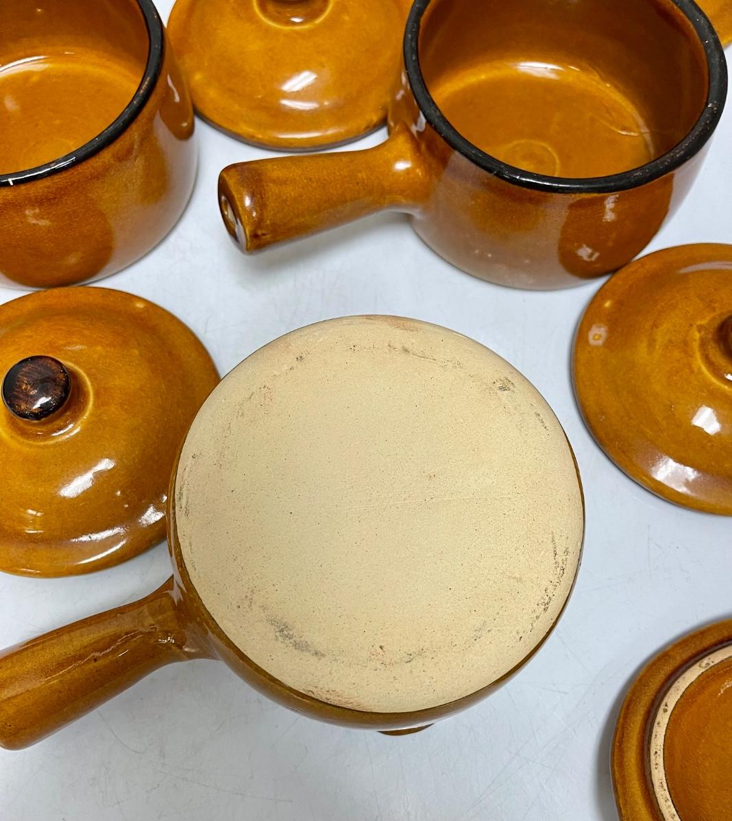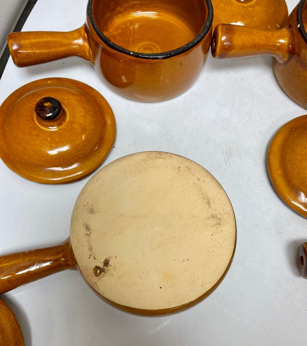 Individual soup pots in good used condition with some very minor paint dings along some edges.