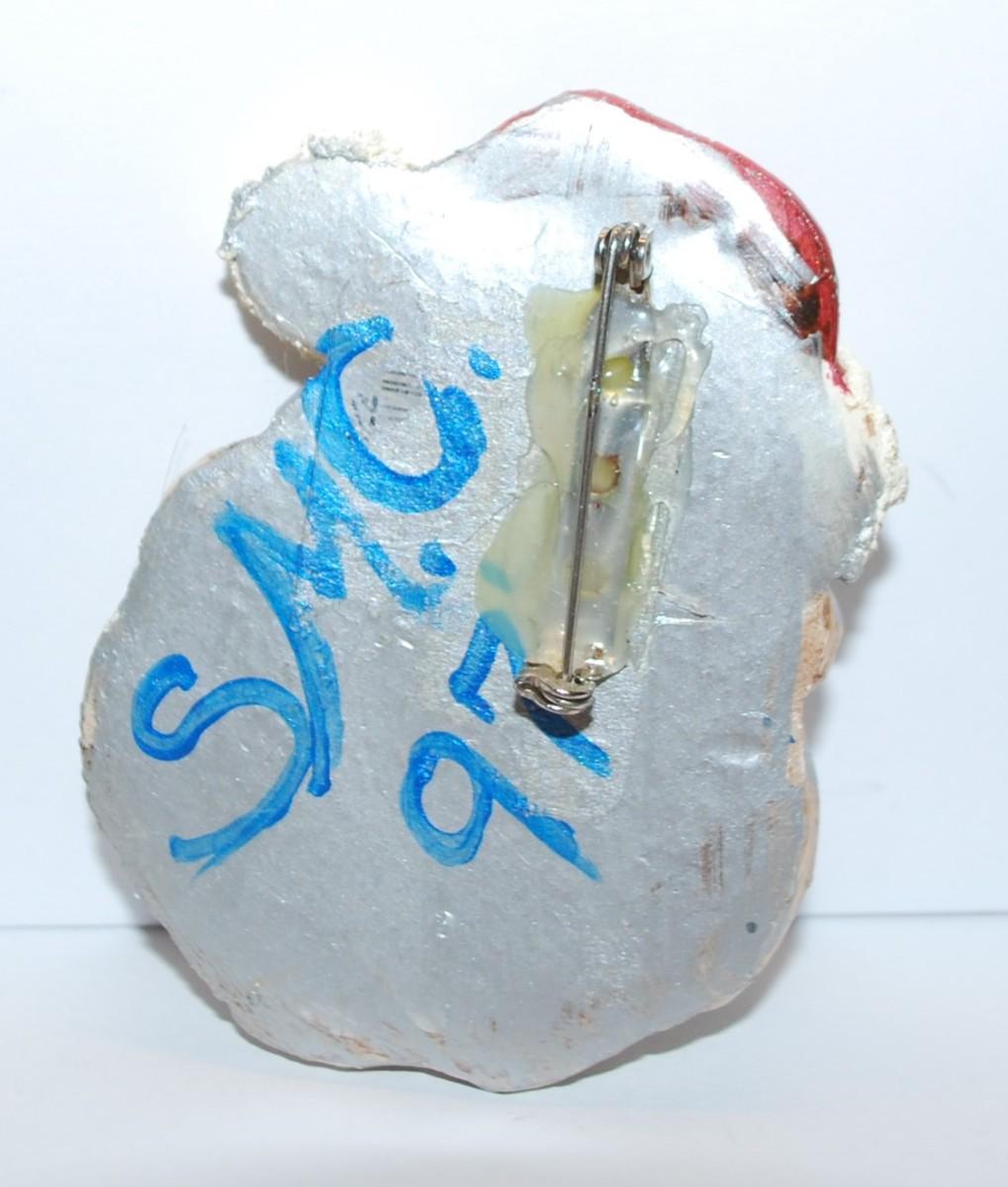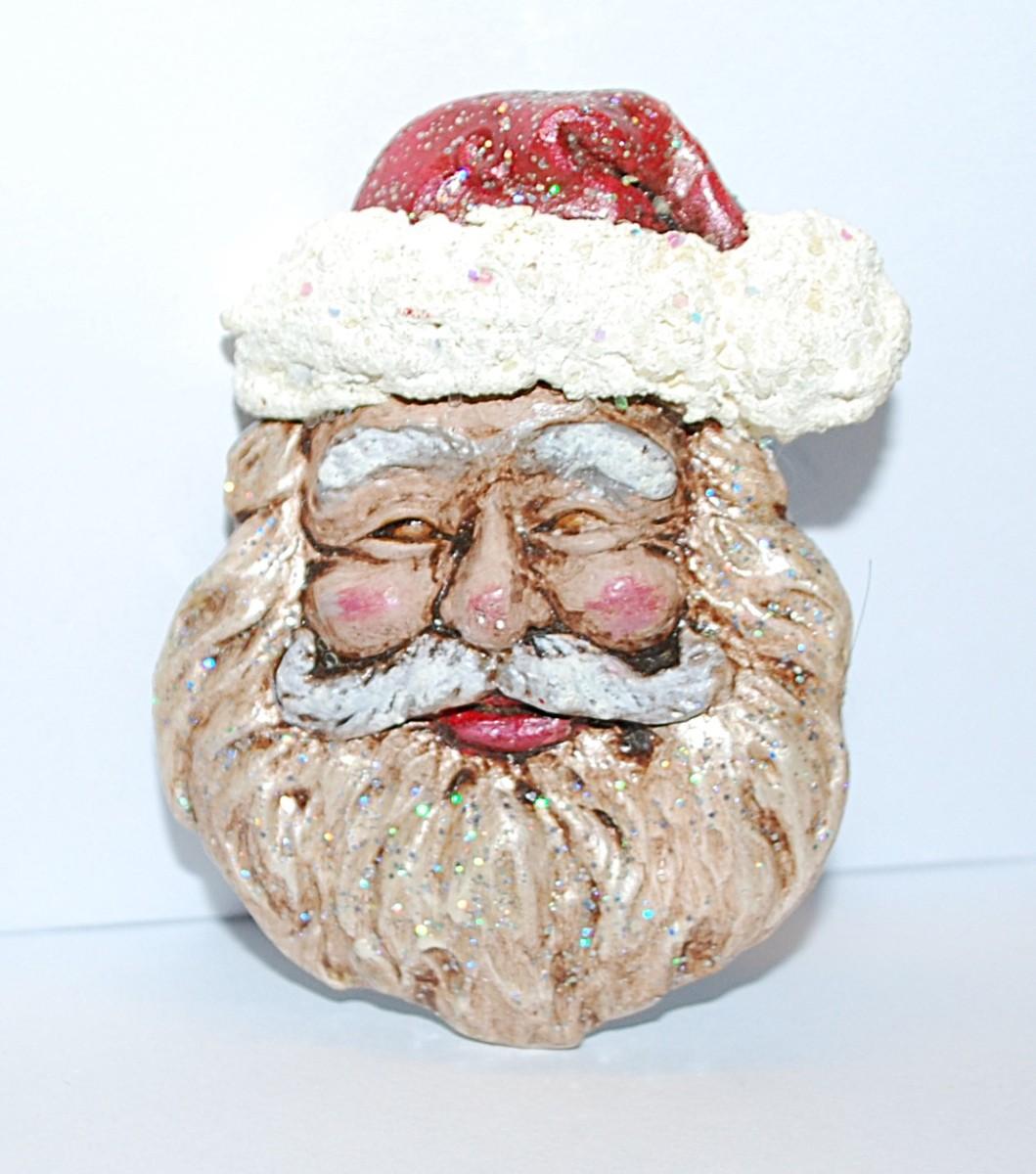 Handcrafted SANTA FACE BROOCH (2¾" x 2") with Puffy Cheeks & Glittery Beard on a Composite Setting