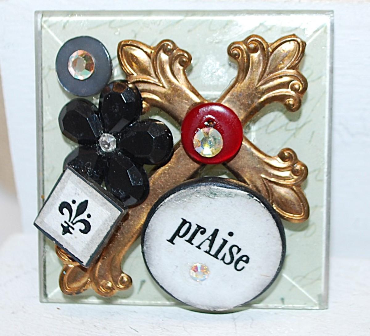 Handcrafted Spiritual CROSS BROOCH (2" x 2") on Wooden Base