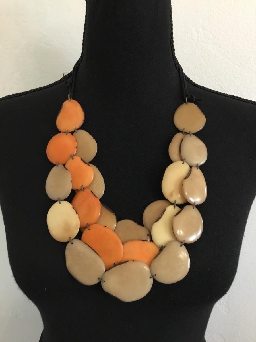 Handcrafted Unique vintage, three strand Tagua nut statement necklace