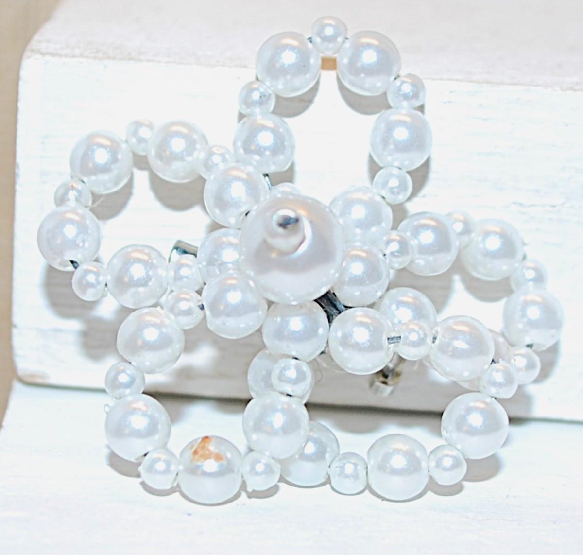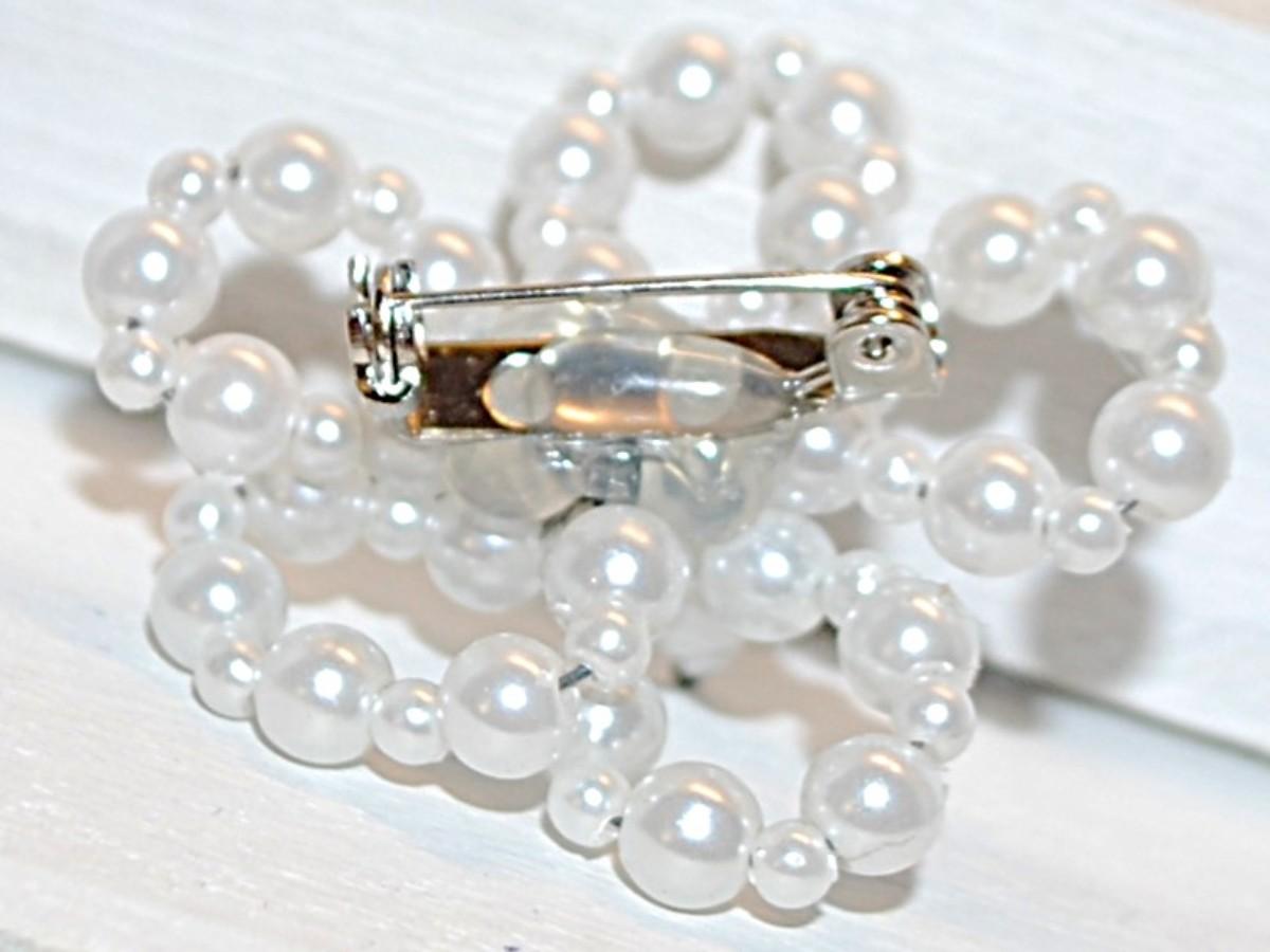 Handcrafted White Pearl-Like Beads Flower BROOCH (1½" Diam.)
