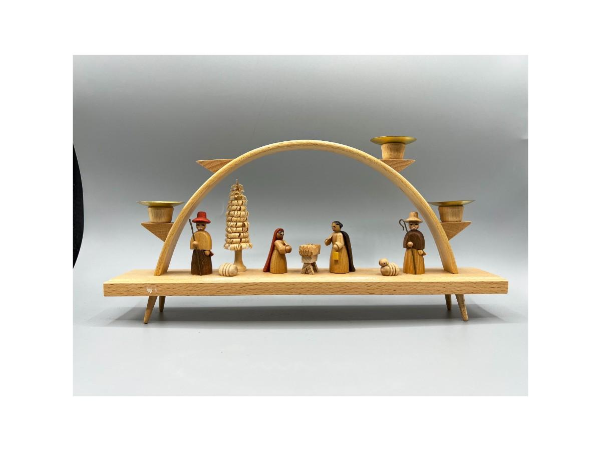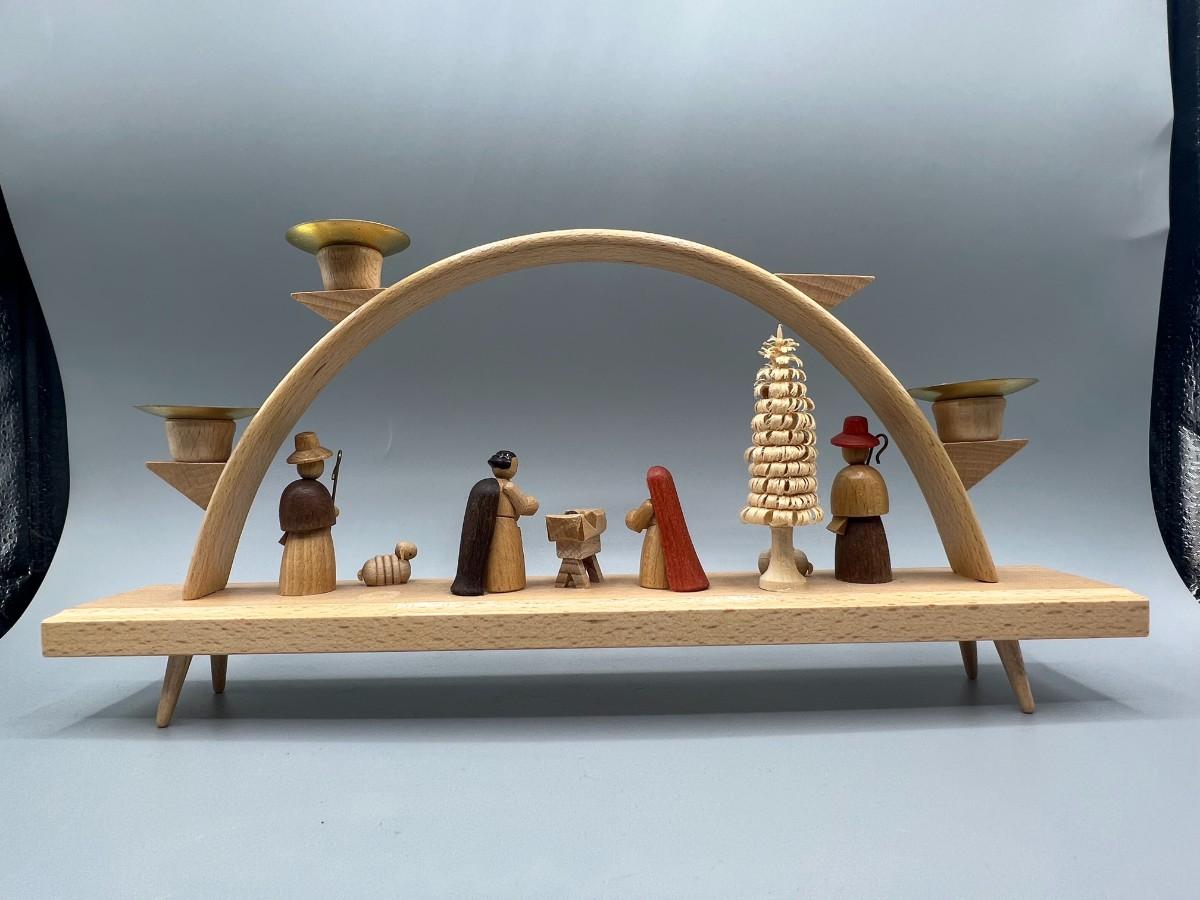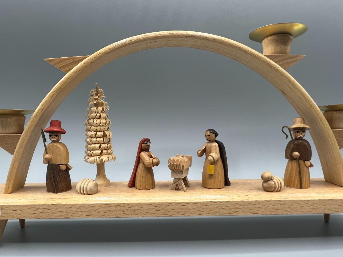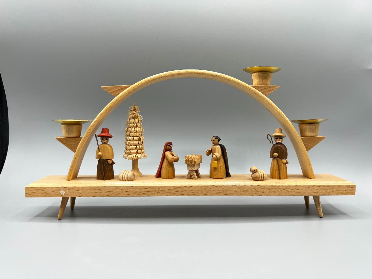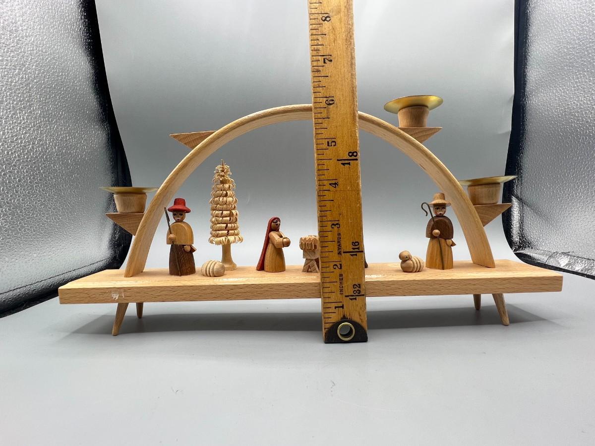 Handcrafted wood nativity scene candleholder. Missing one of the candleholders but can still be displayed nicely. About 12" length.