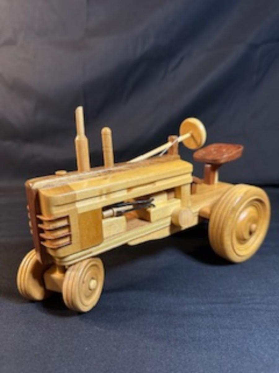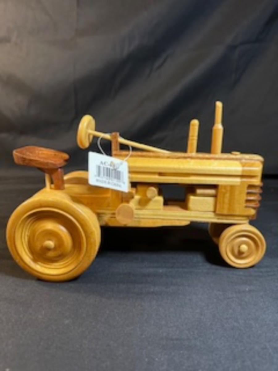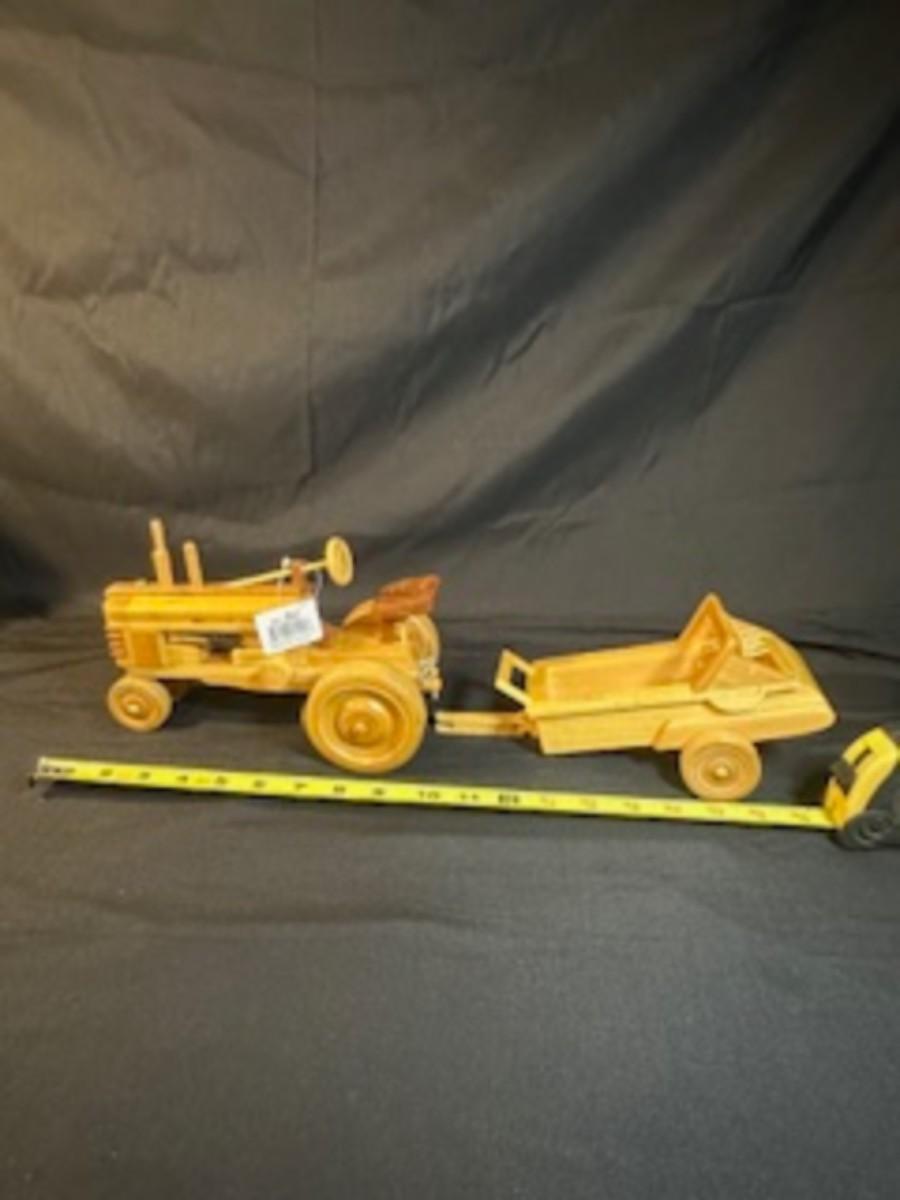 HANDCRAFTED WOODEN TRACTOR AND IMPLEMENT