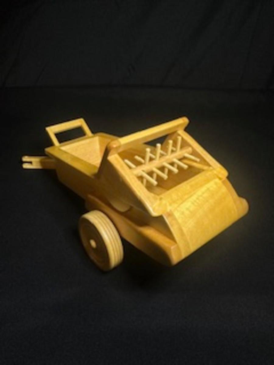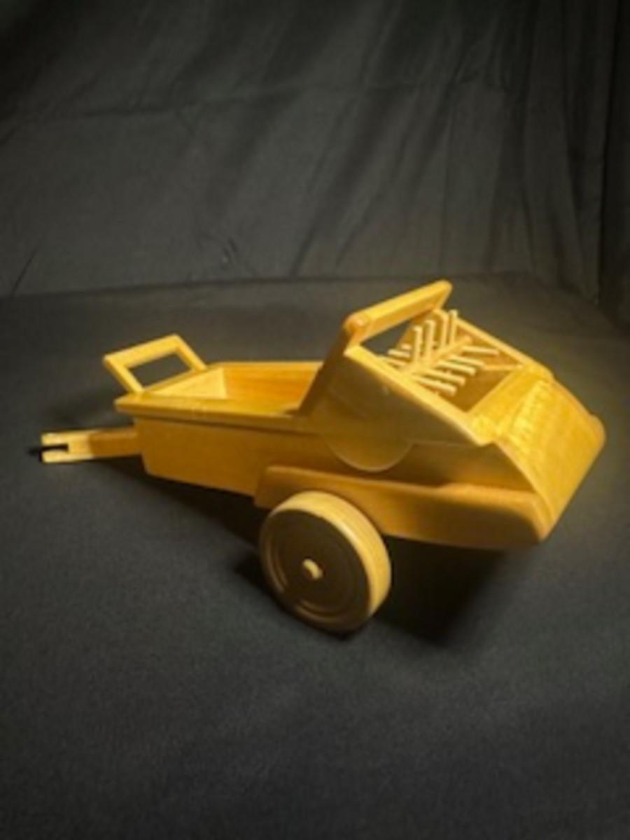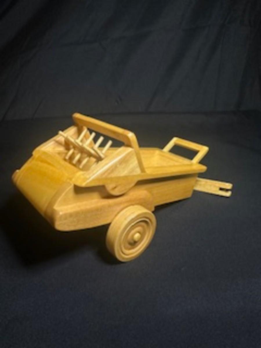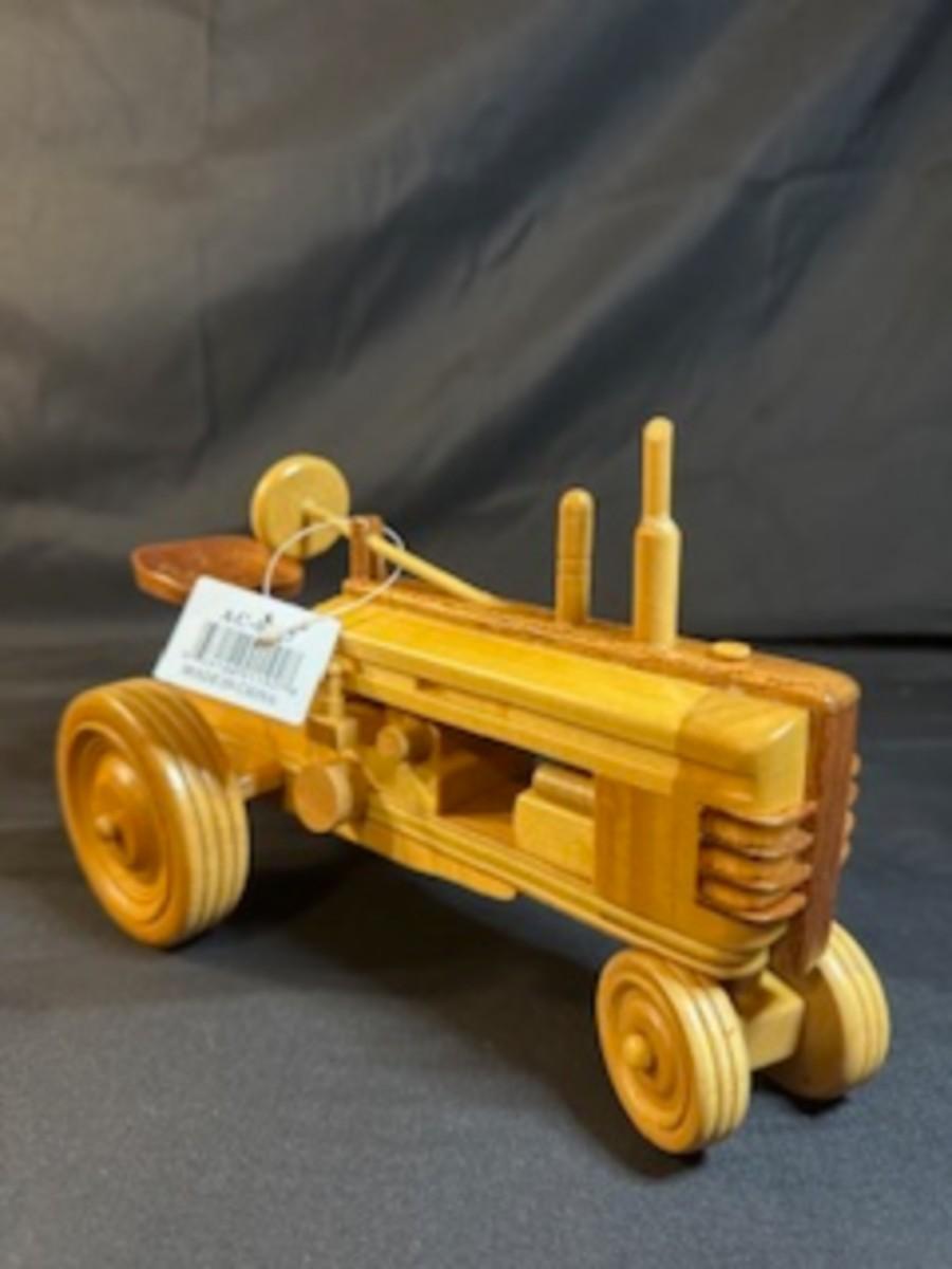 HANDCRAFTED WOODEN TRACTOR AND IMPLEMENT