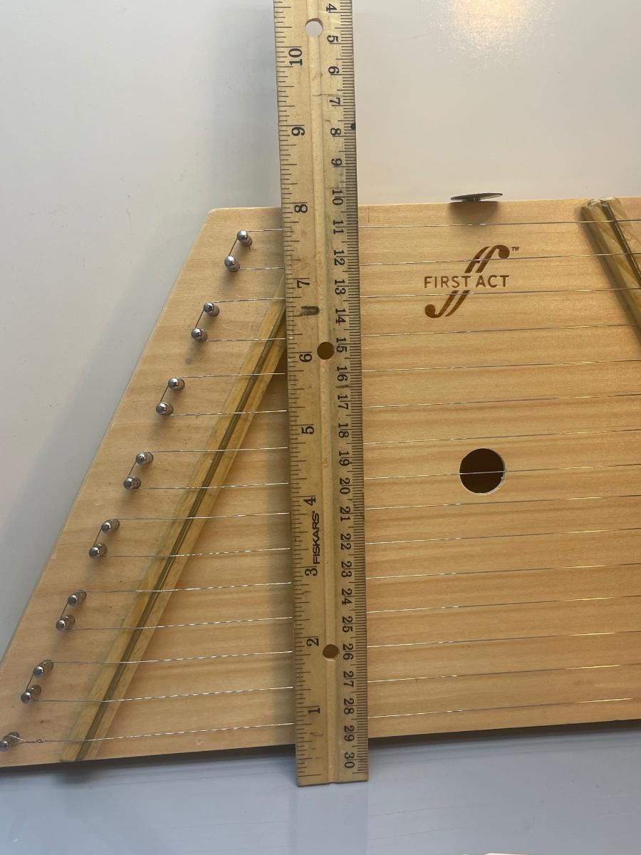 Handheld harp with sheet music