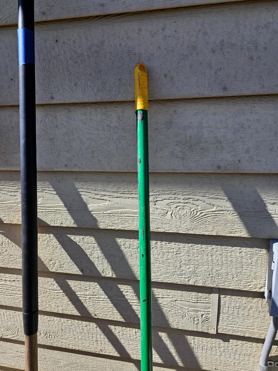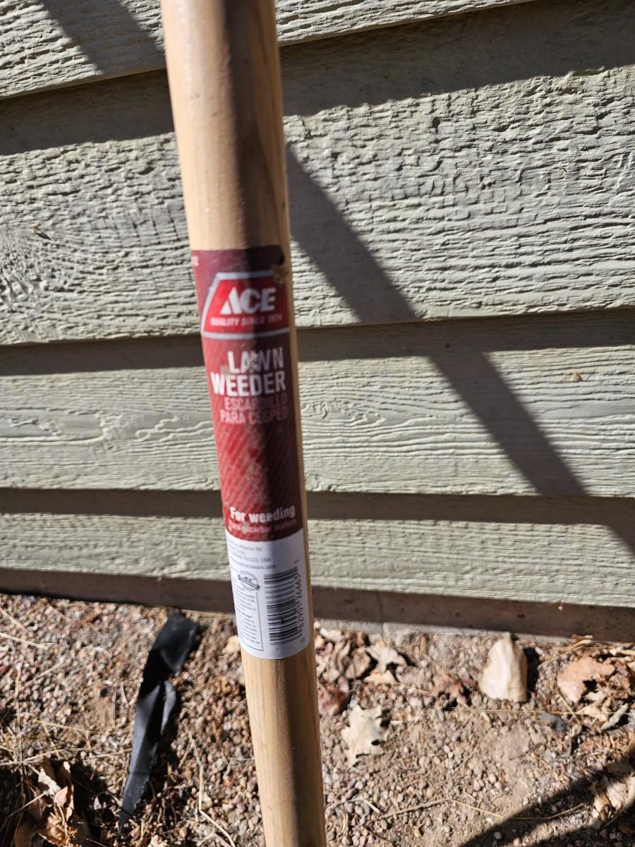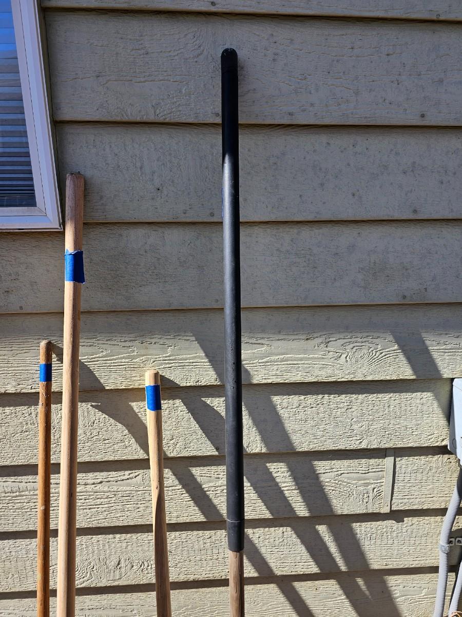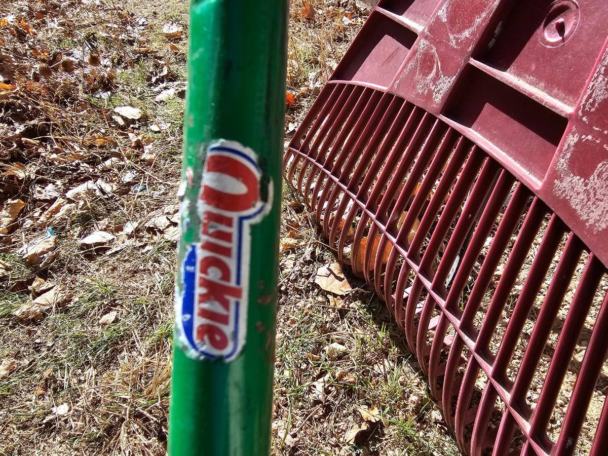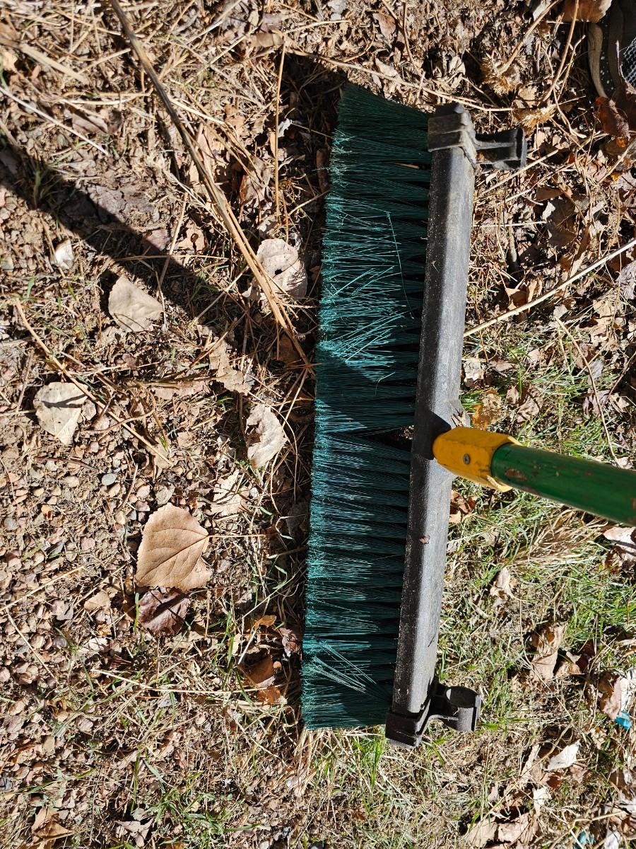 Handheld yard and garden tools - Leaf rake - push broom - weed tool - and two handles