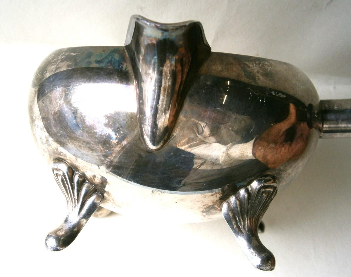 Handled Silverplate Gravy Boat by Poole Silver Co. from the early to mid 1900's, 3 in. tall x 8 in. long.