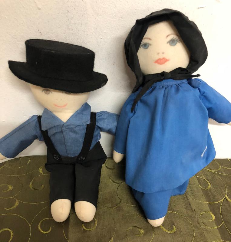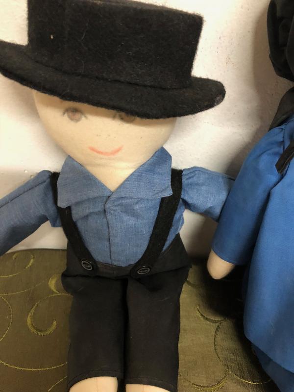 Here are a pair of Amish dolls..Plush..Handmade...11" tall...