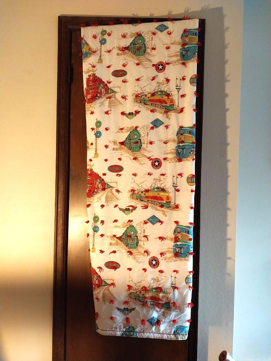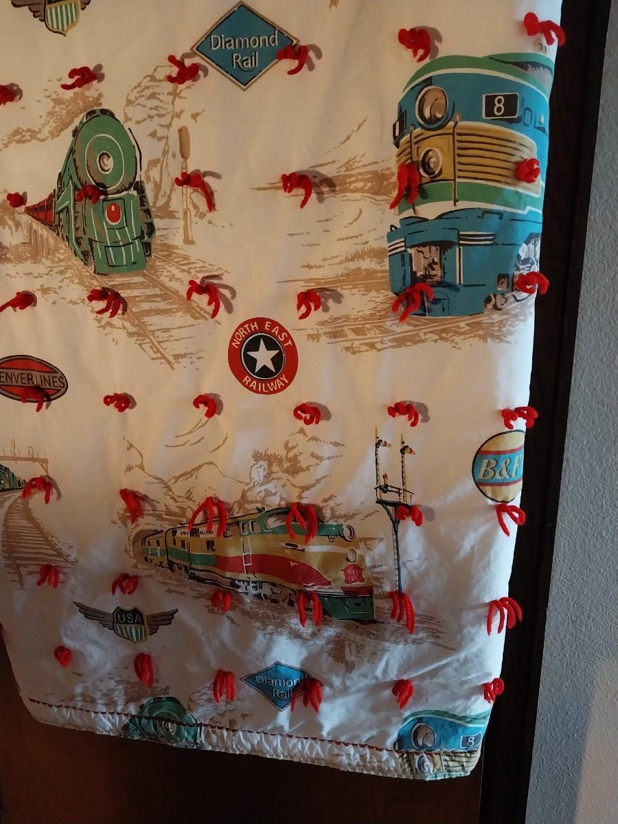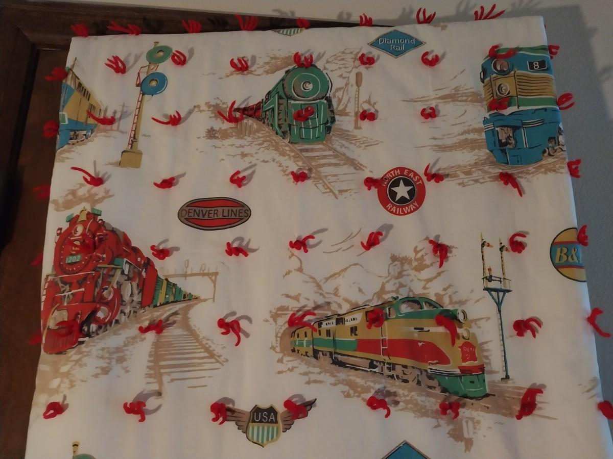 HANDMADE BLANKET WITH VINTAGE RAILROAD THEME