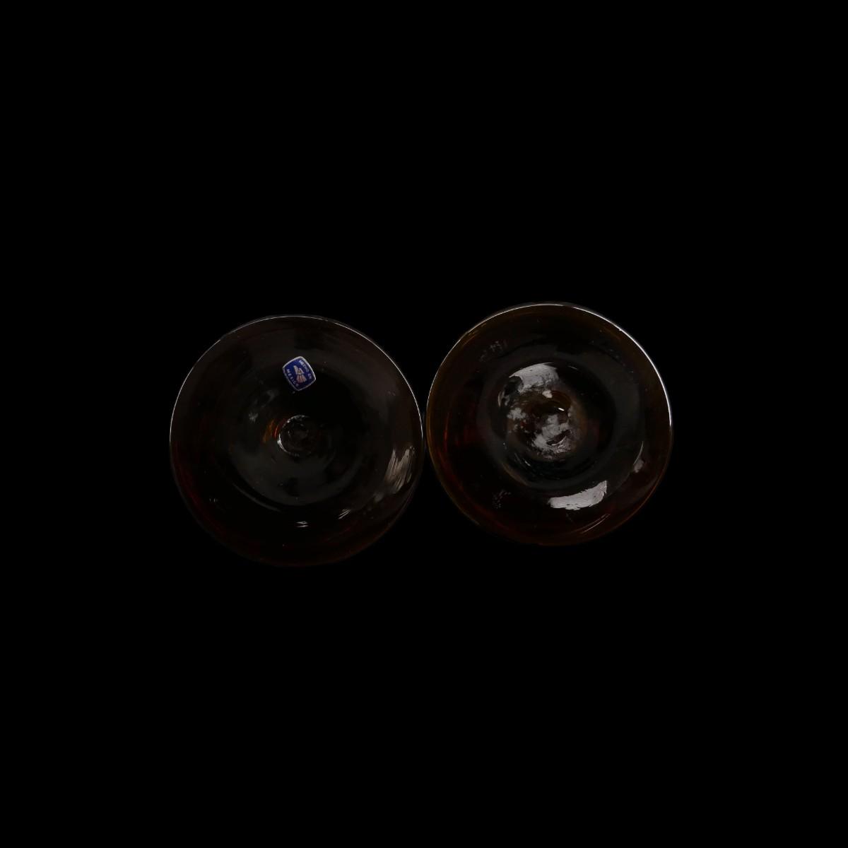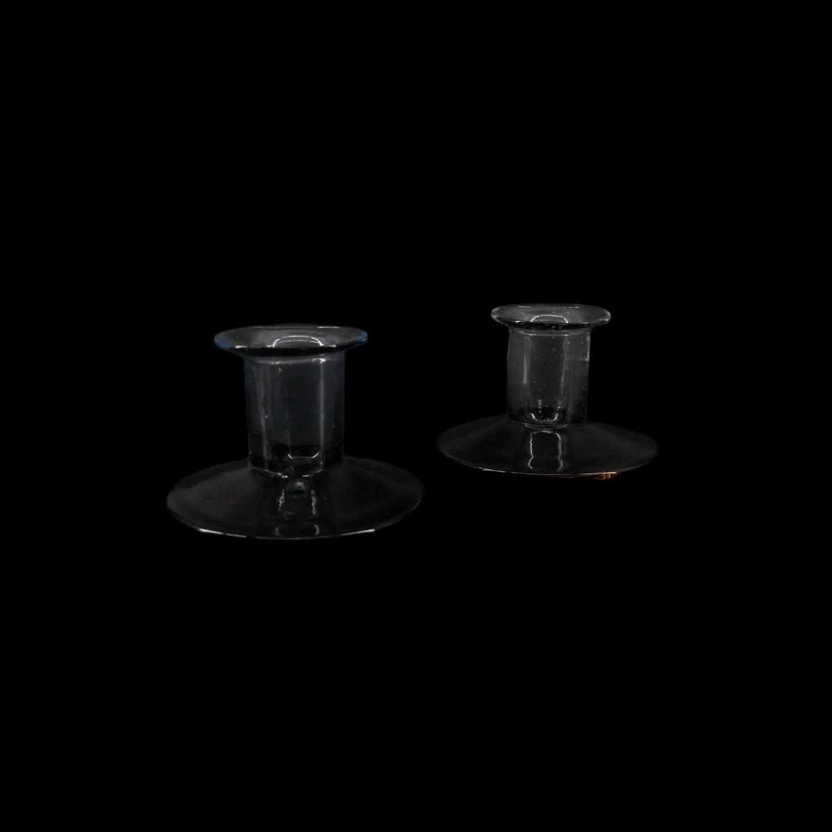 Handmade brown blown glass candle holders, made in Mexico. Great condition! Candles not included. Each measures L 4" x H 2.5". Lot weighs 1 lb. (D78)