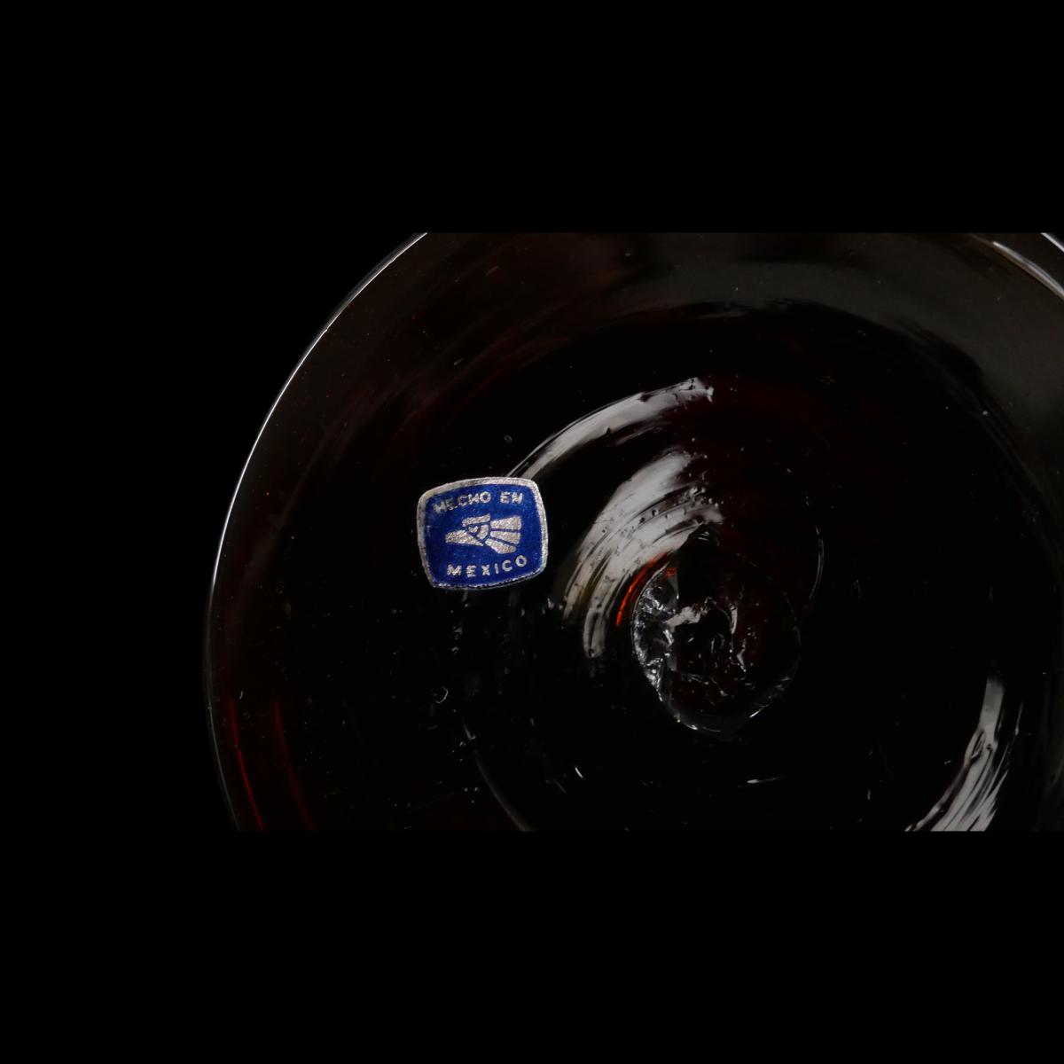 Handmade brown blown glass candle holders, made in Mexico. Great condition! Candles not included. Each measures L 4" x H 2.5". Lot weighs 1 lb. (D78)