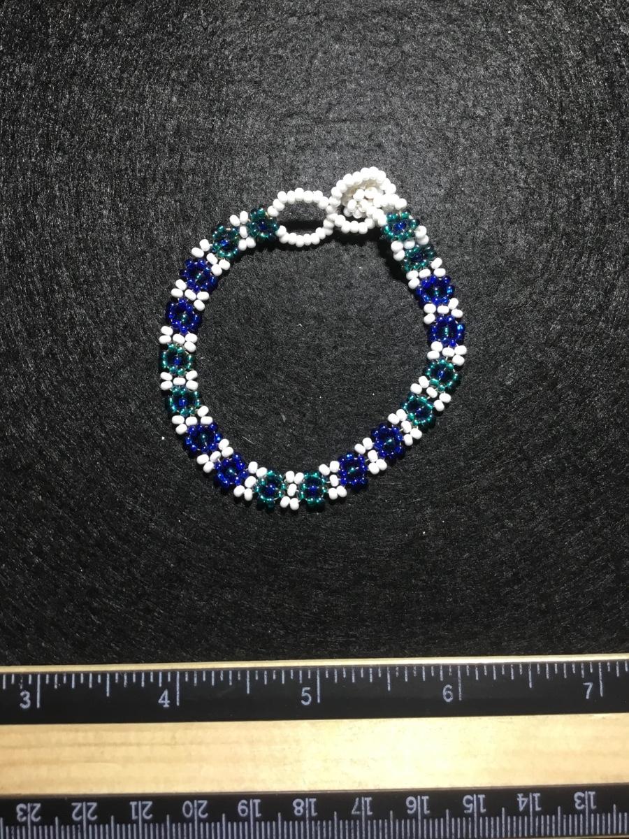 Handmade blue and white flower beaded fashion bracelet