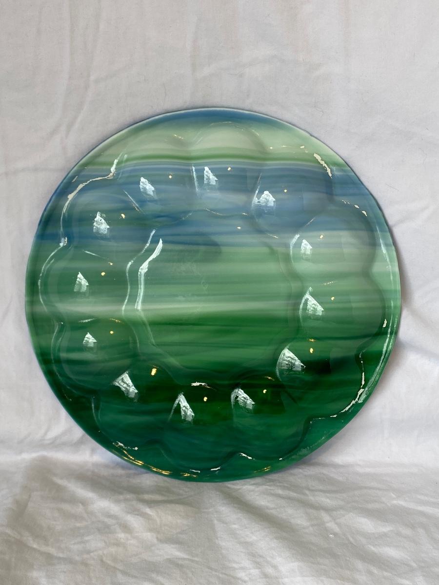 Hand-Made Blue Green Deviled Egg Tray Platter