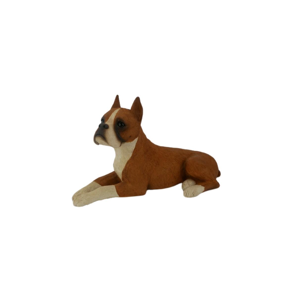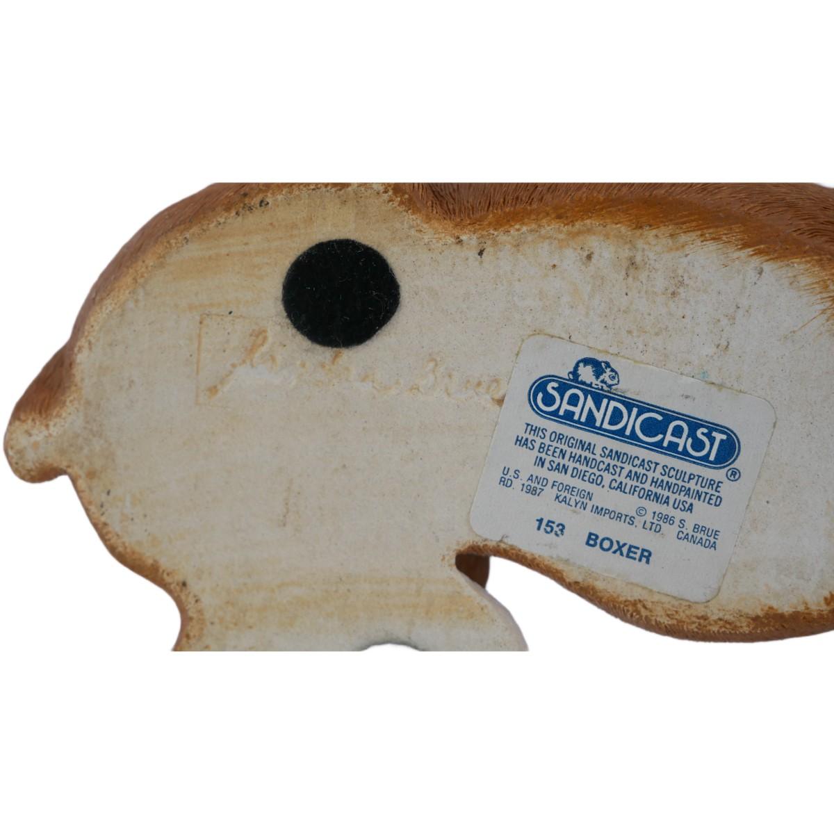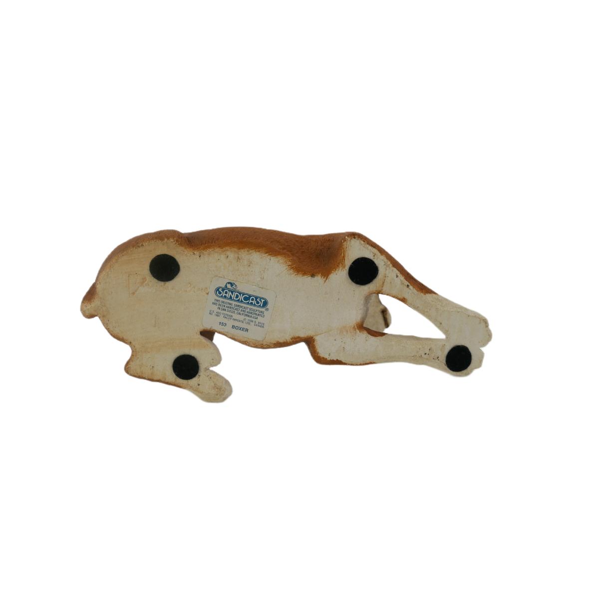 Vintage 1987 Sandicast #153 Boxer sculpture. Handcast and hand painted in San Diego, USA. Double-signed by artist Sandra Brue. Excellent condition, no issues found. Measures L 9.75" x H 6" x W 4". Weighs 2 lb 2 oz. (C76)
