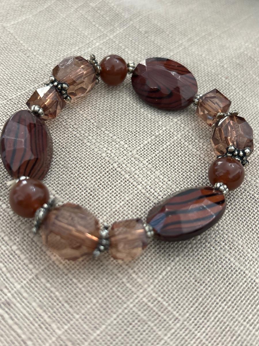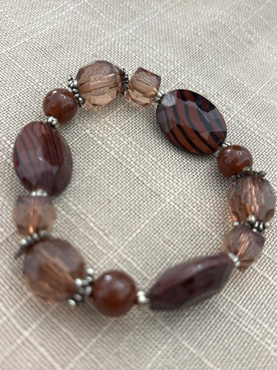 Handmade Brown and Heather Glass Beaded Lampwork Stretch Bracelet
