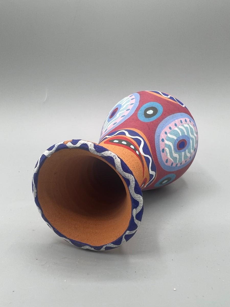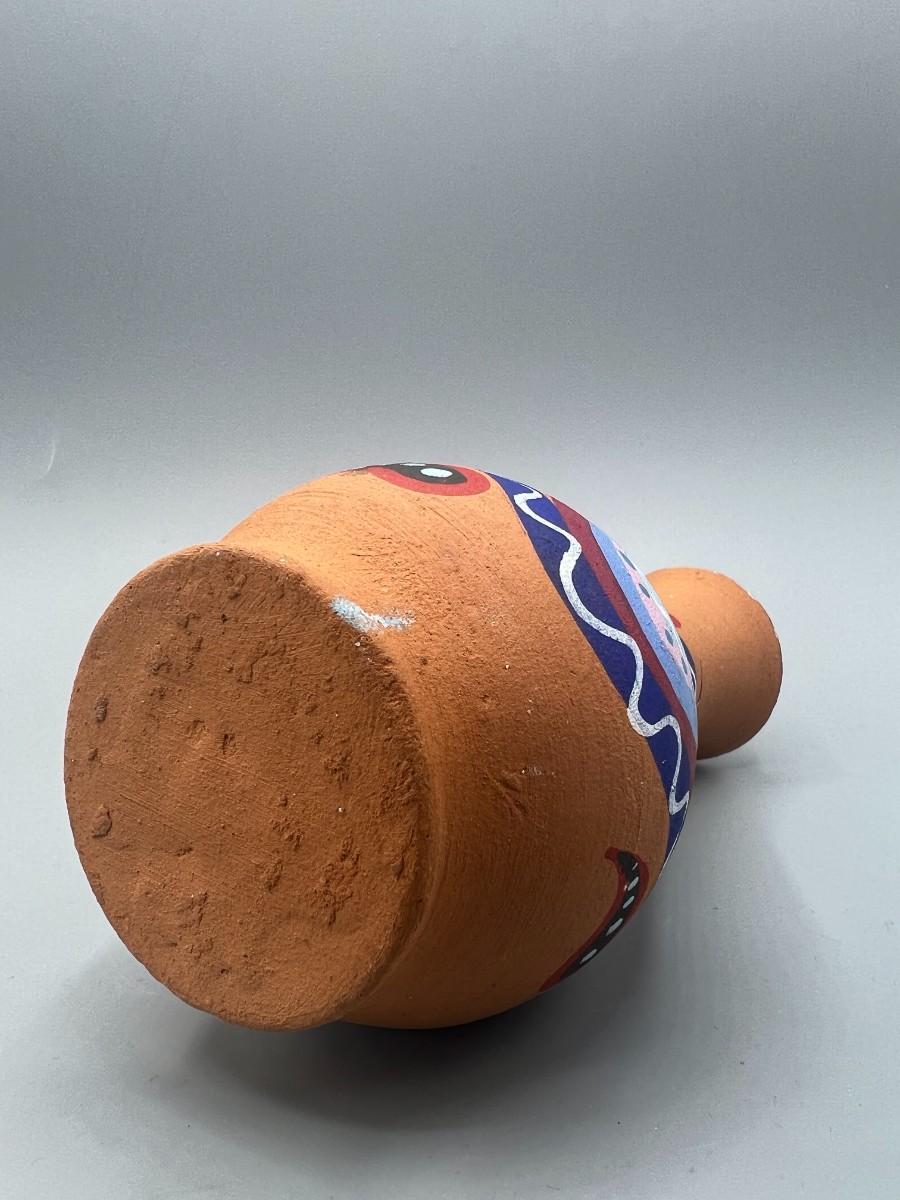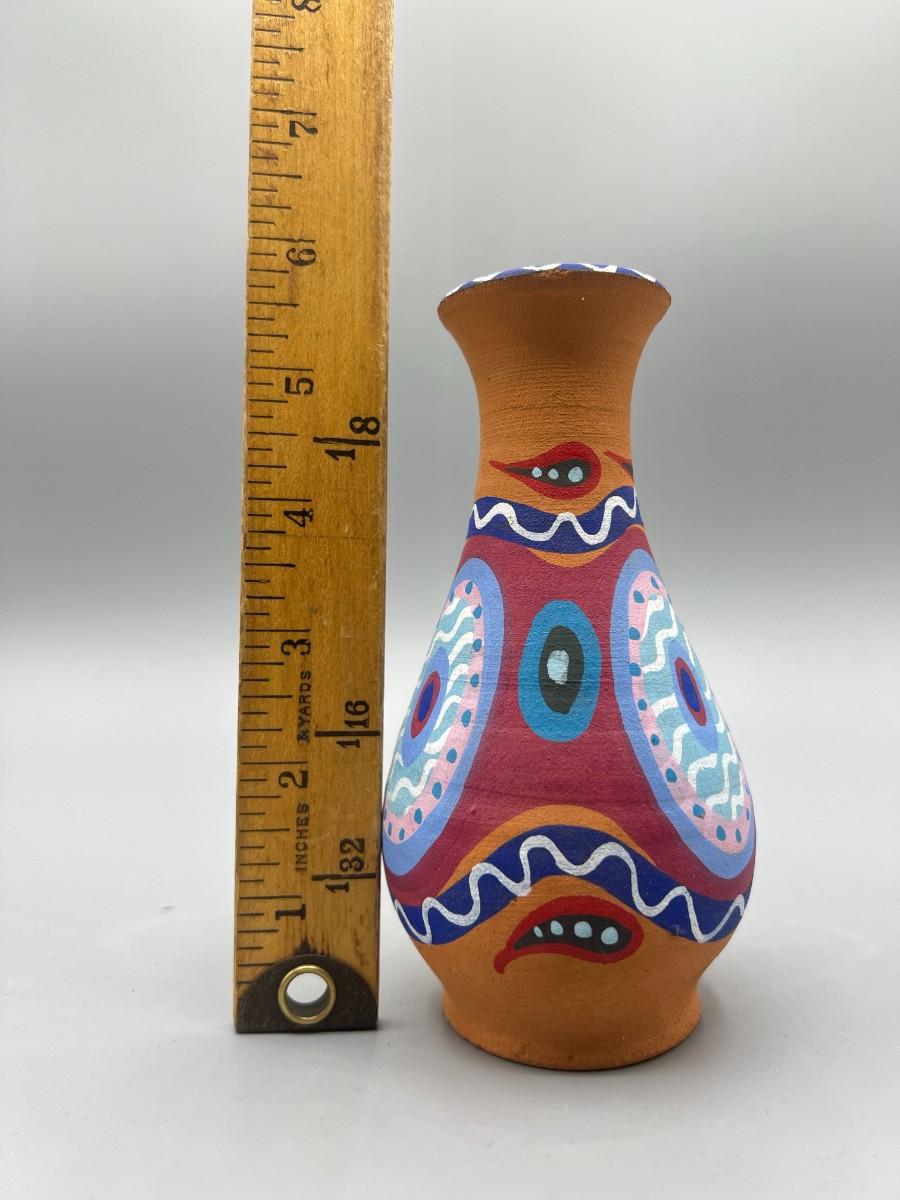 Handmade Ceramic Art Painted Pottery Vase, there is no significant damage to the piece and is in god displayable condition. Check pictures for more details and for sizing.