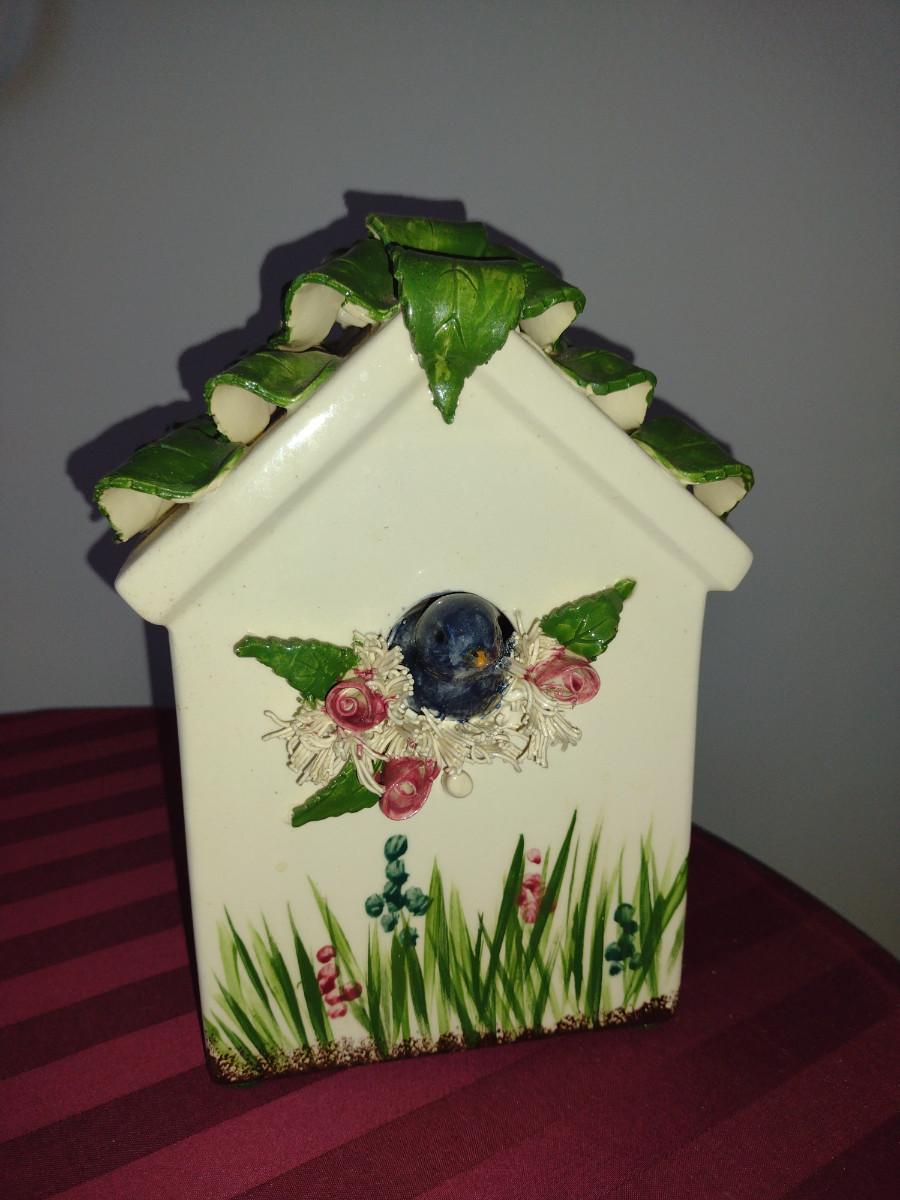 Handmade Ceramic Birdhouse Design Home Decor- Approx 9 1/2" Tall