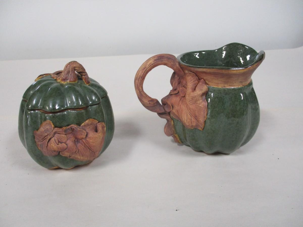 Handmade Ceramic Creamer & Sugar Dish Signed By Artist