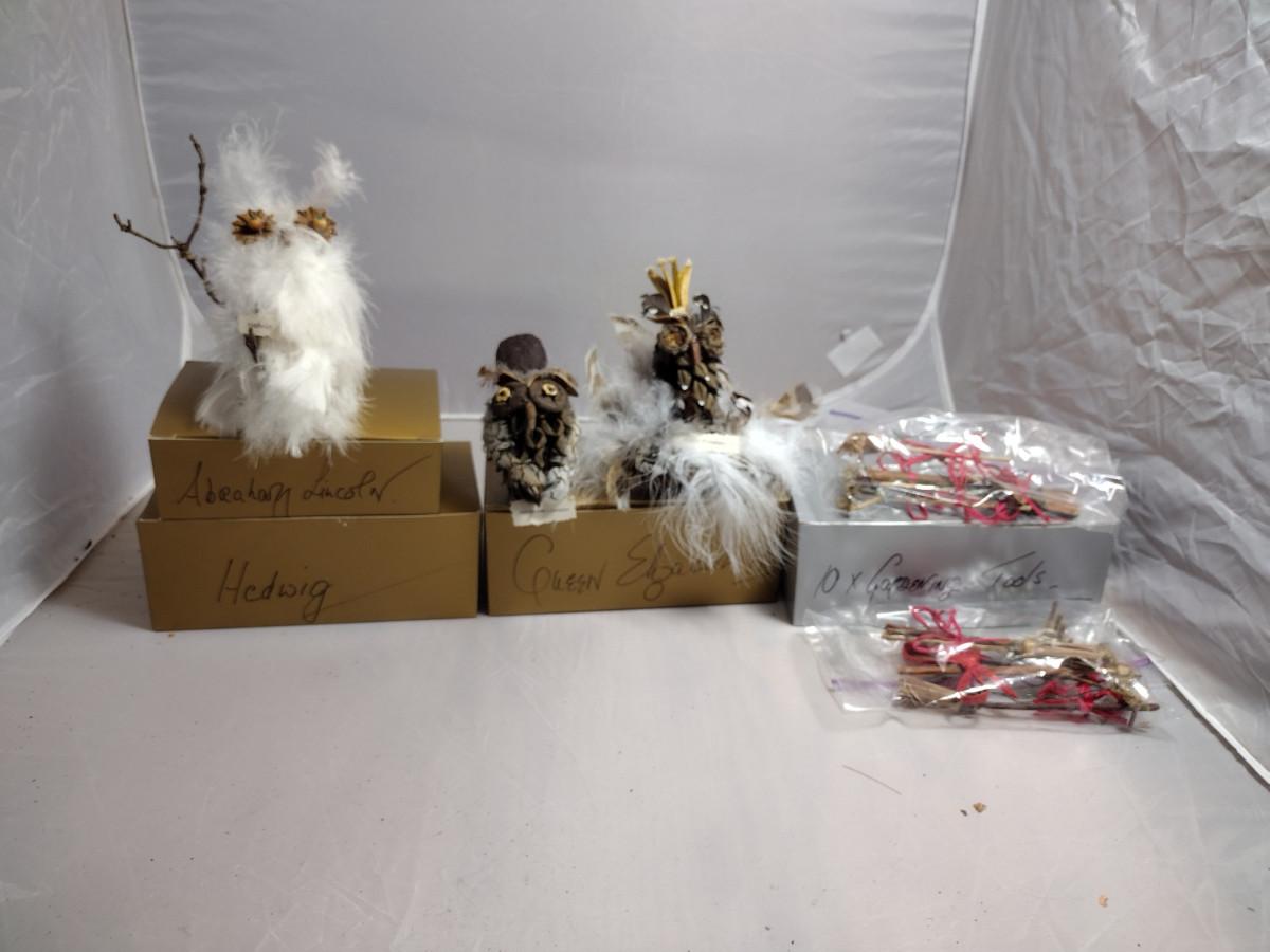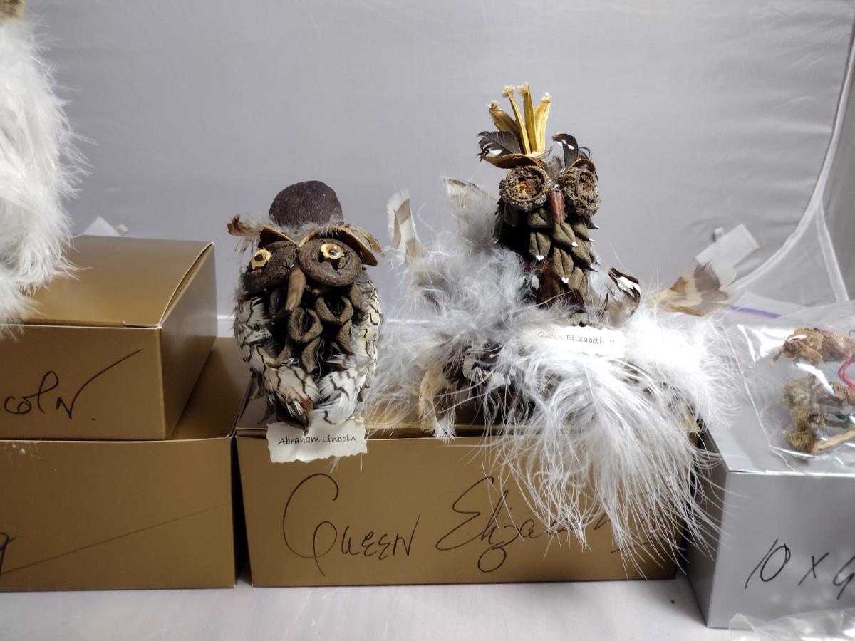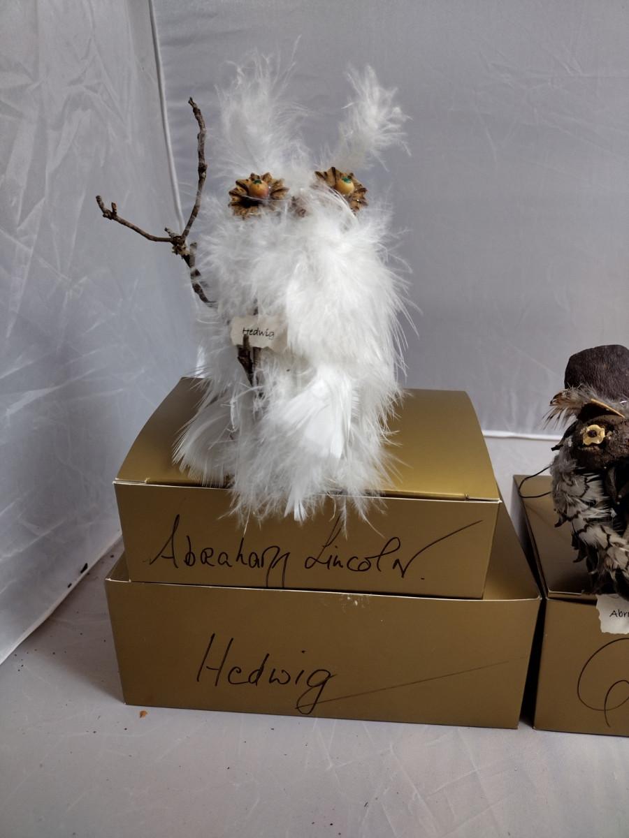 These ornaments were made by a crafting group in Henderson County, NC. Except for the wire hanger, everything is handmade. These ornaments are fragile and there are a couple that might need a little TLC with some fresh adhesive. Please see the boxes for the names of the people or characters represented by these beautiful handmade pieces!