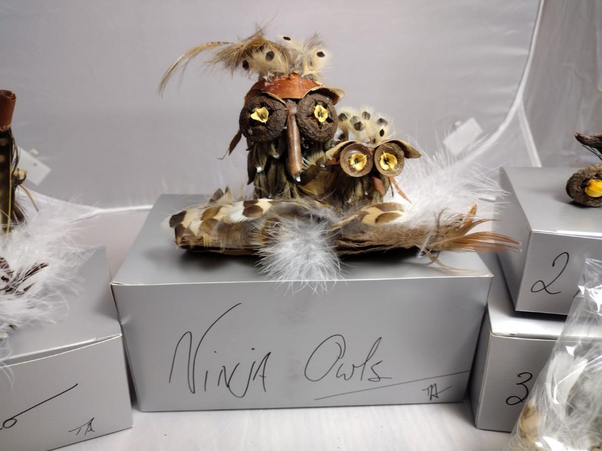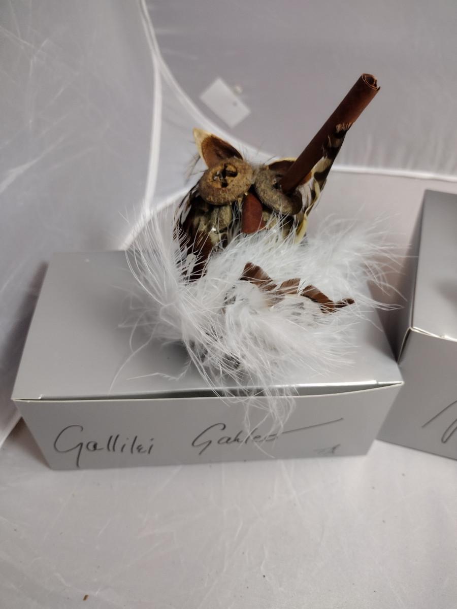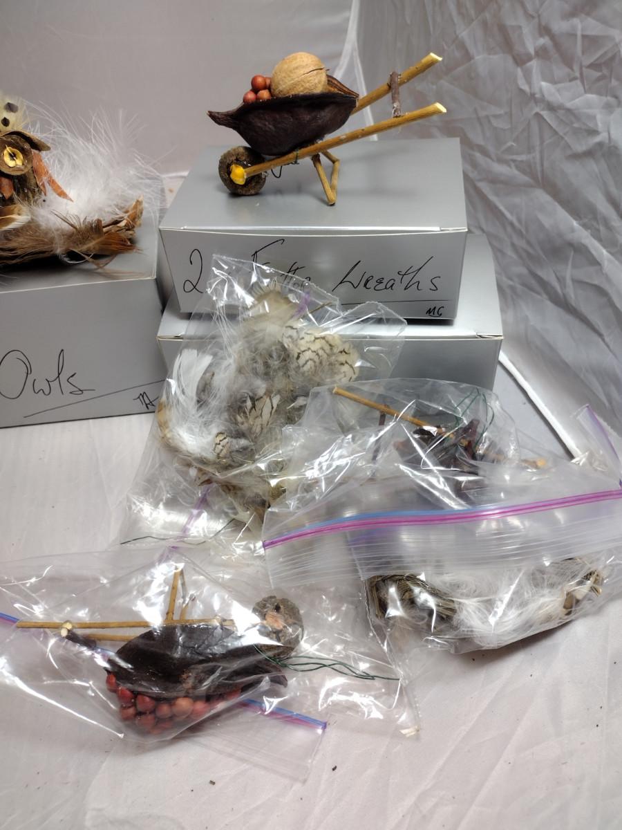 These ornaments were made by a crafting group in Henderson County, NC. Except for the wire hanger, everything is handmade. These ornaments are fragile and there are a couple that might need a little TLC with some fresh adhesive. Please see the boxes for the names of the people or characters represented by these beautiful handmade pieces!