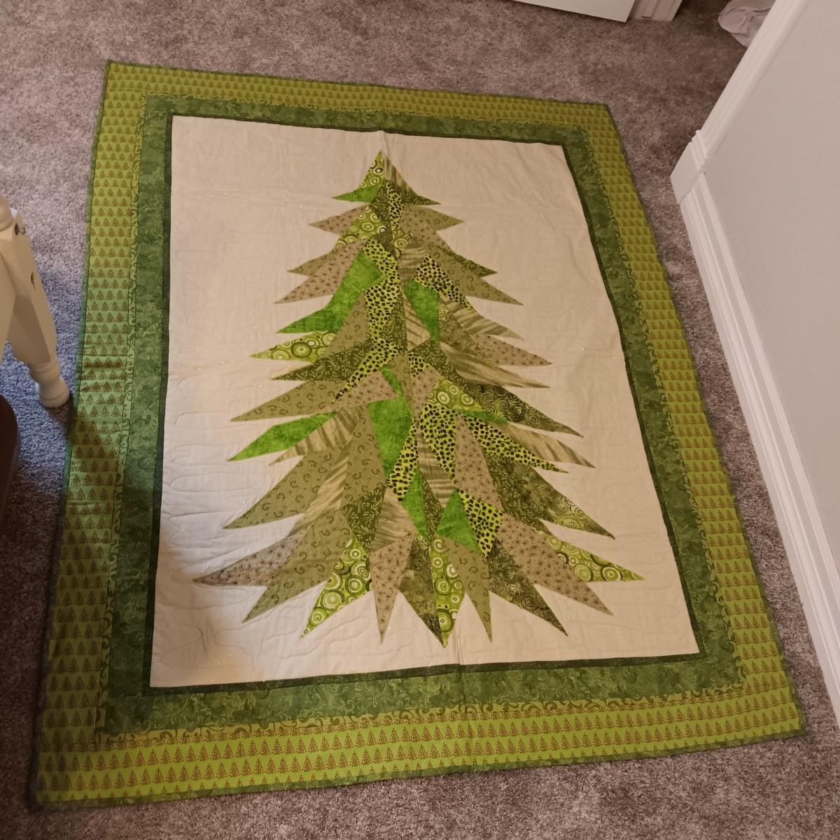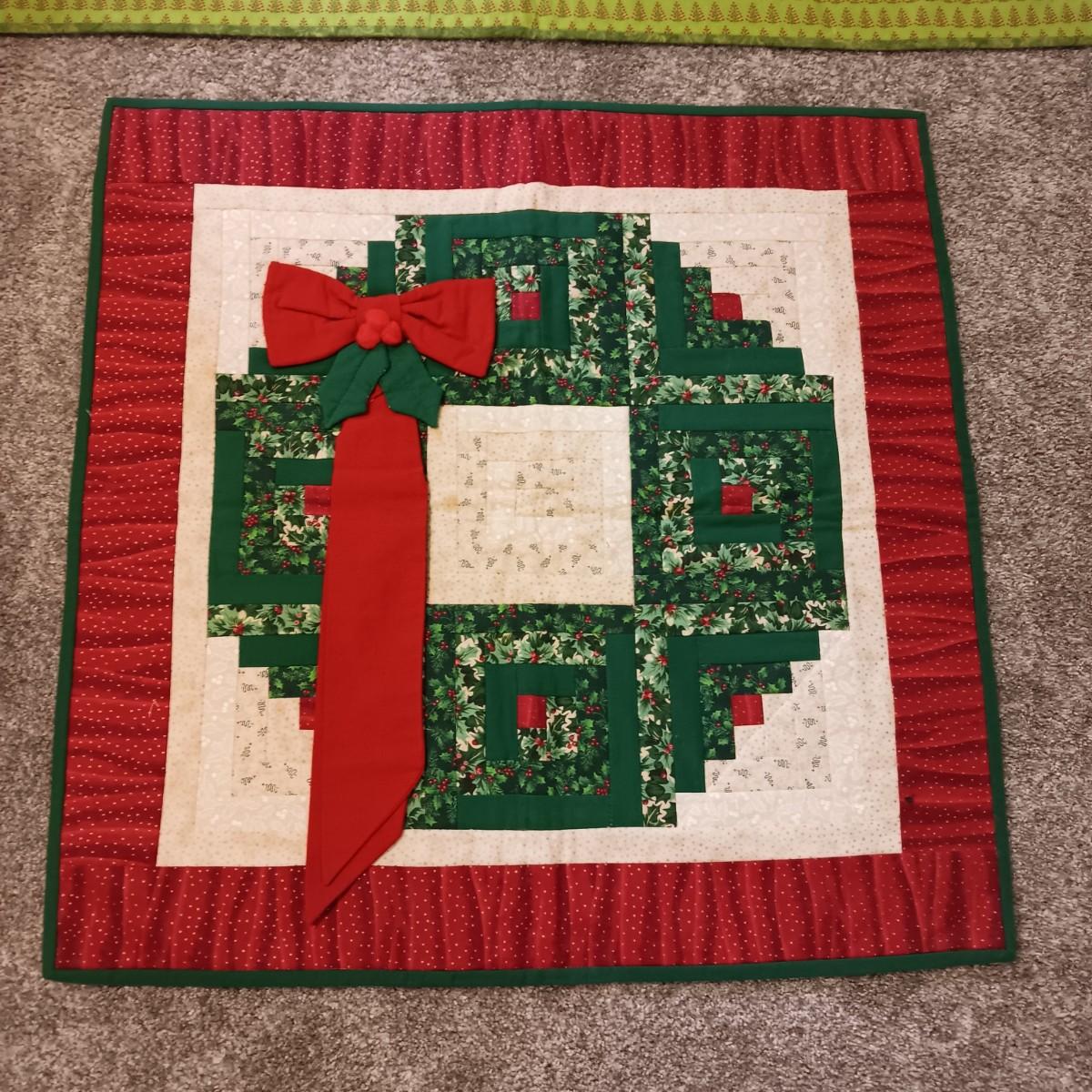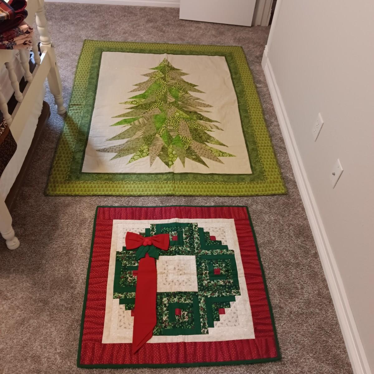 HANDMADE CHRISTMAS TREE THROW AND A QUILTED WREATH WALL HANGING